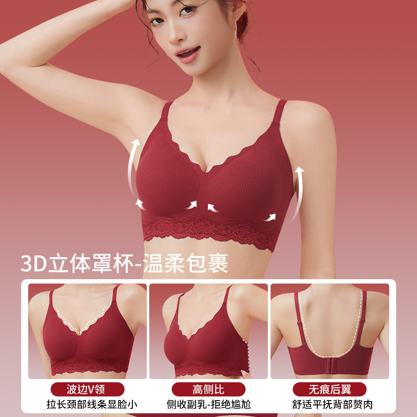 套装 红色内衣女本命年蕾丝法式 2026马年结婚新娘小胸聚拢文胸内裤