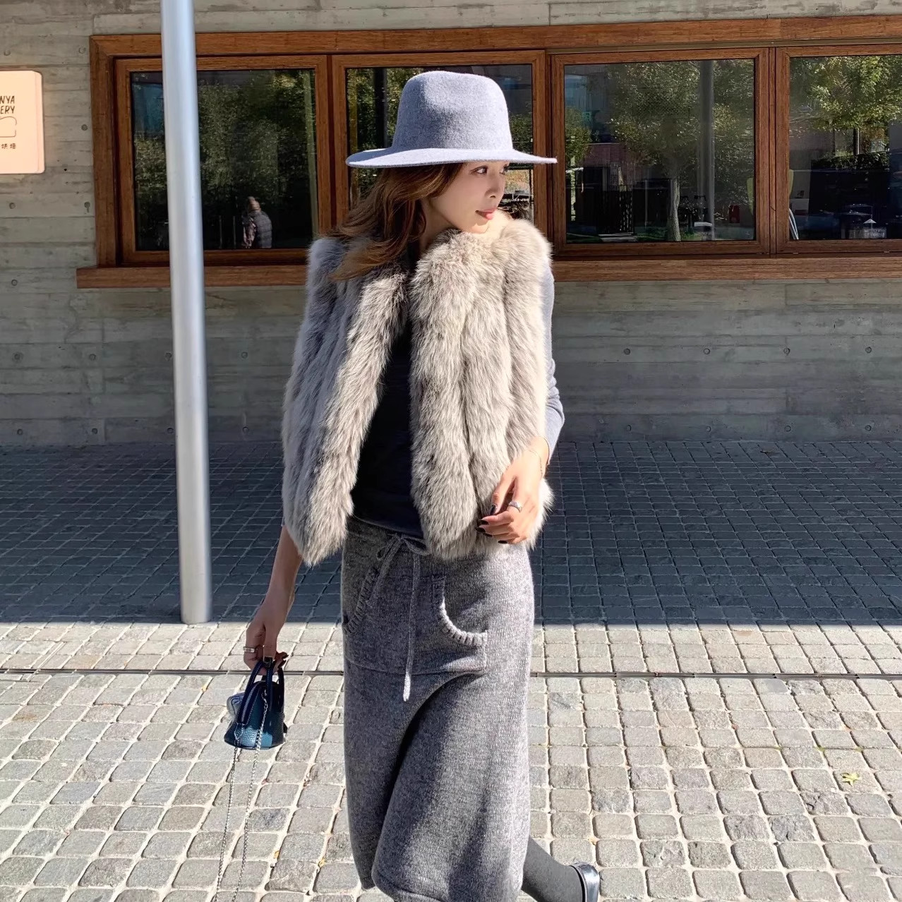 2025新款 高级环保皮草毛毛坎肩上衣 仿狐狸毛立领马甲外套女秋冬季