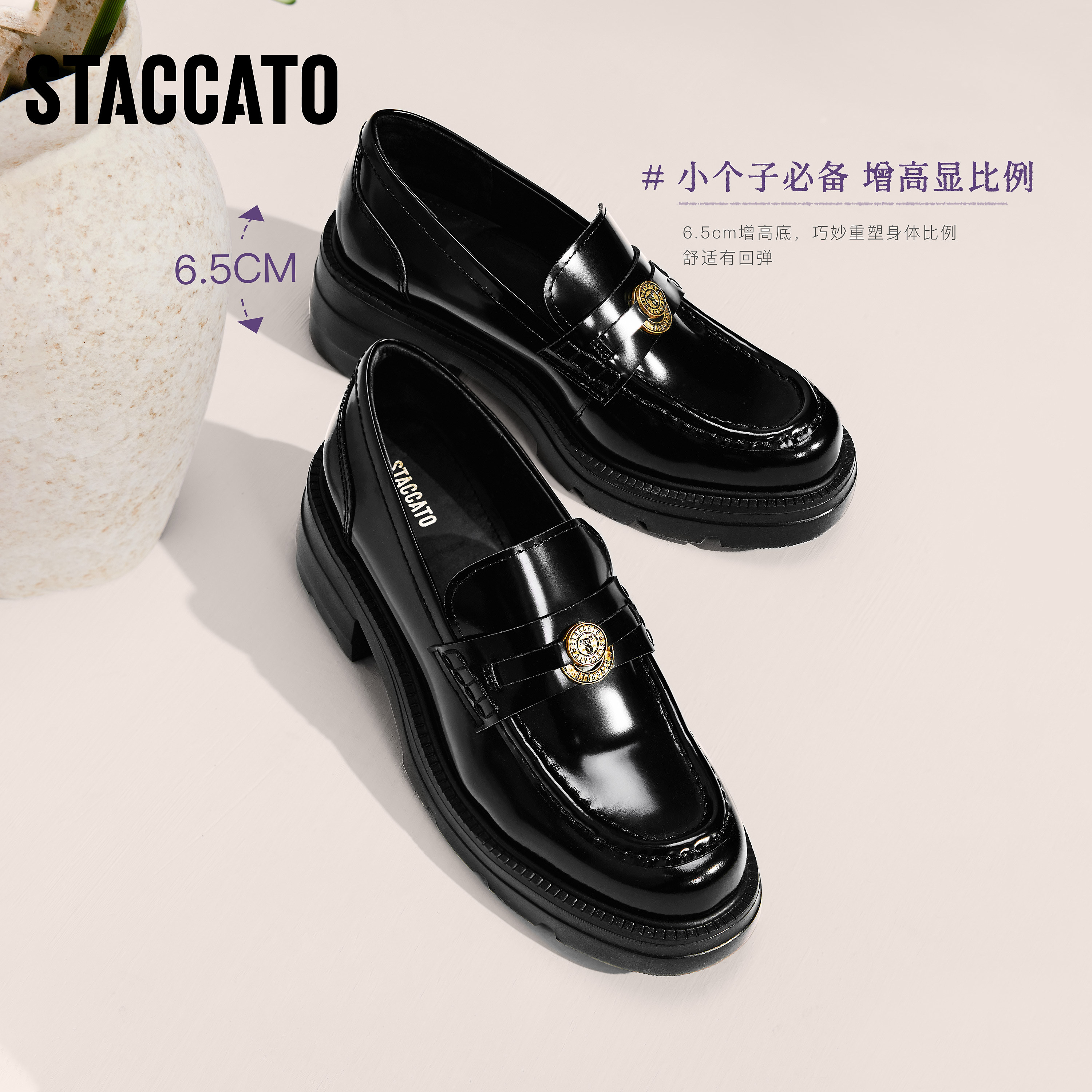 一脚蹬女鞋 英伦风小皮鞋 EEZ05AA6 许愿币爵士乐福鞋 思加图2026新款