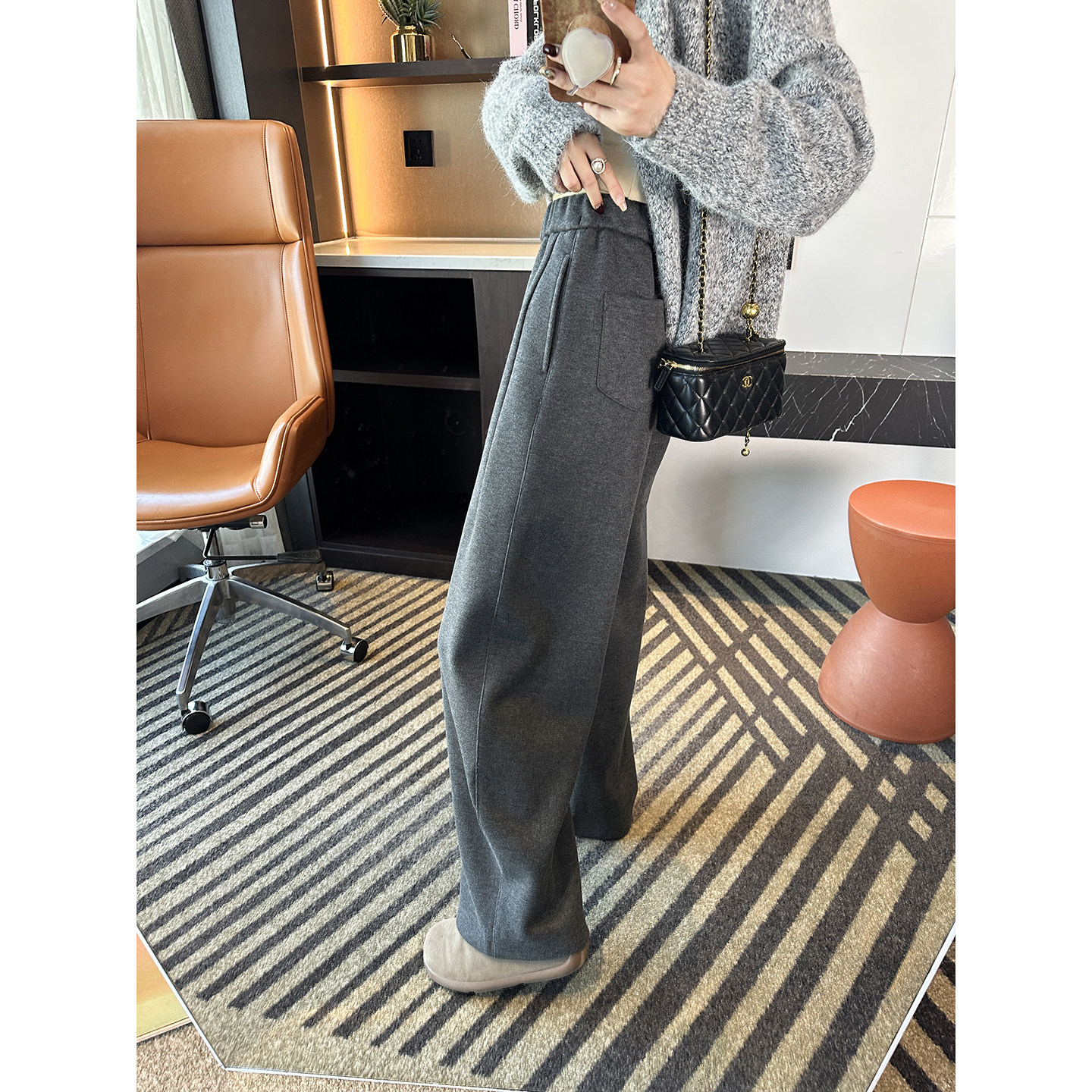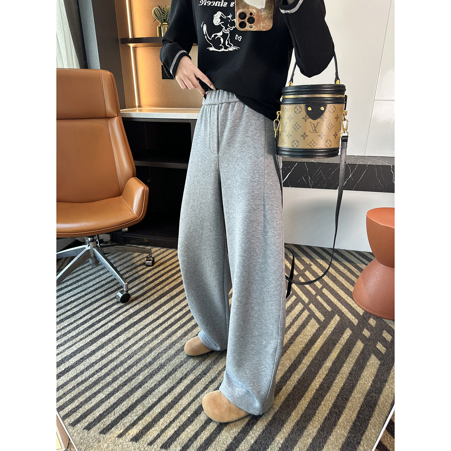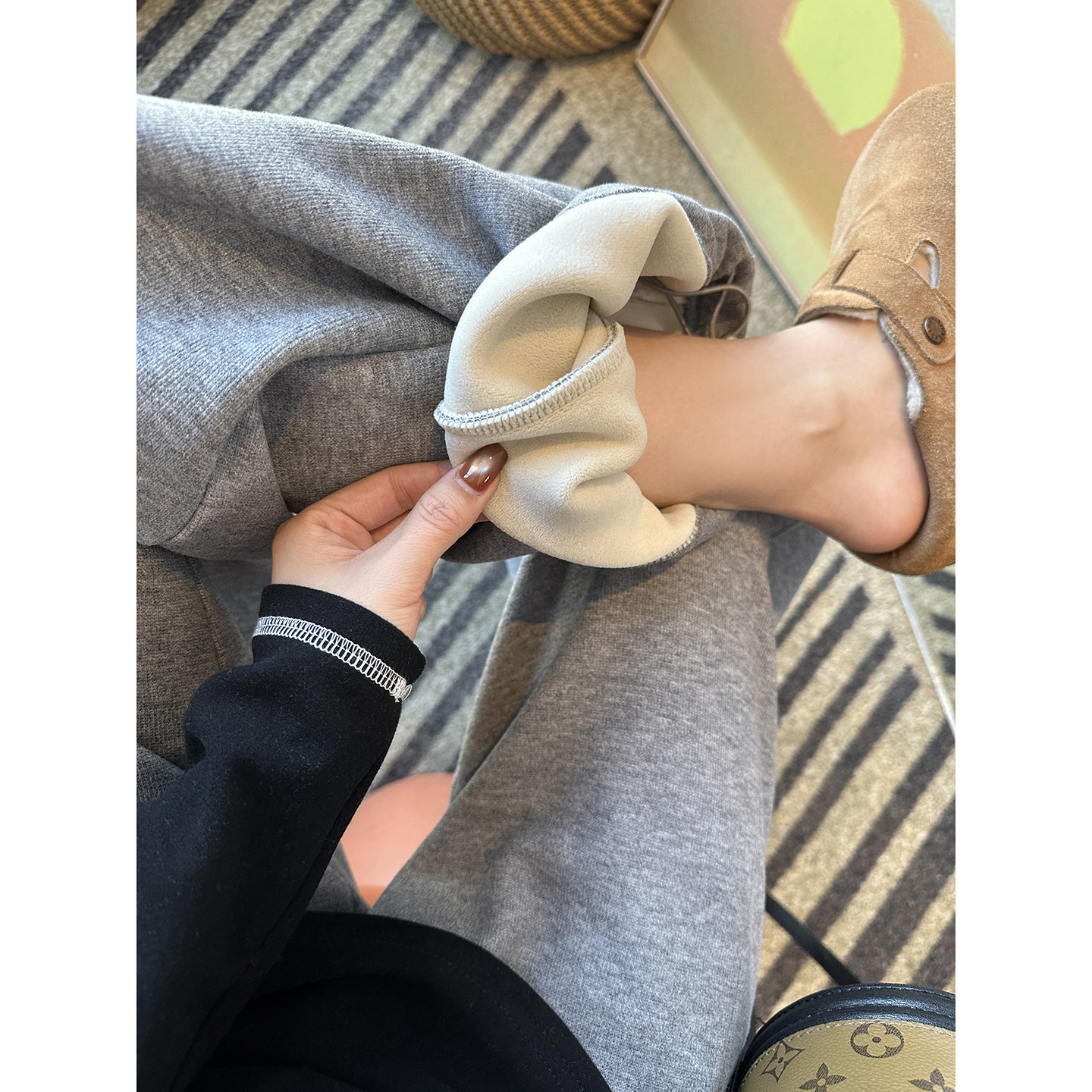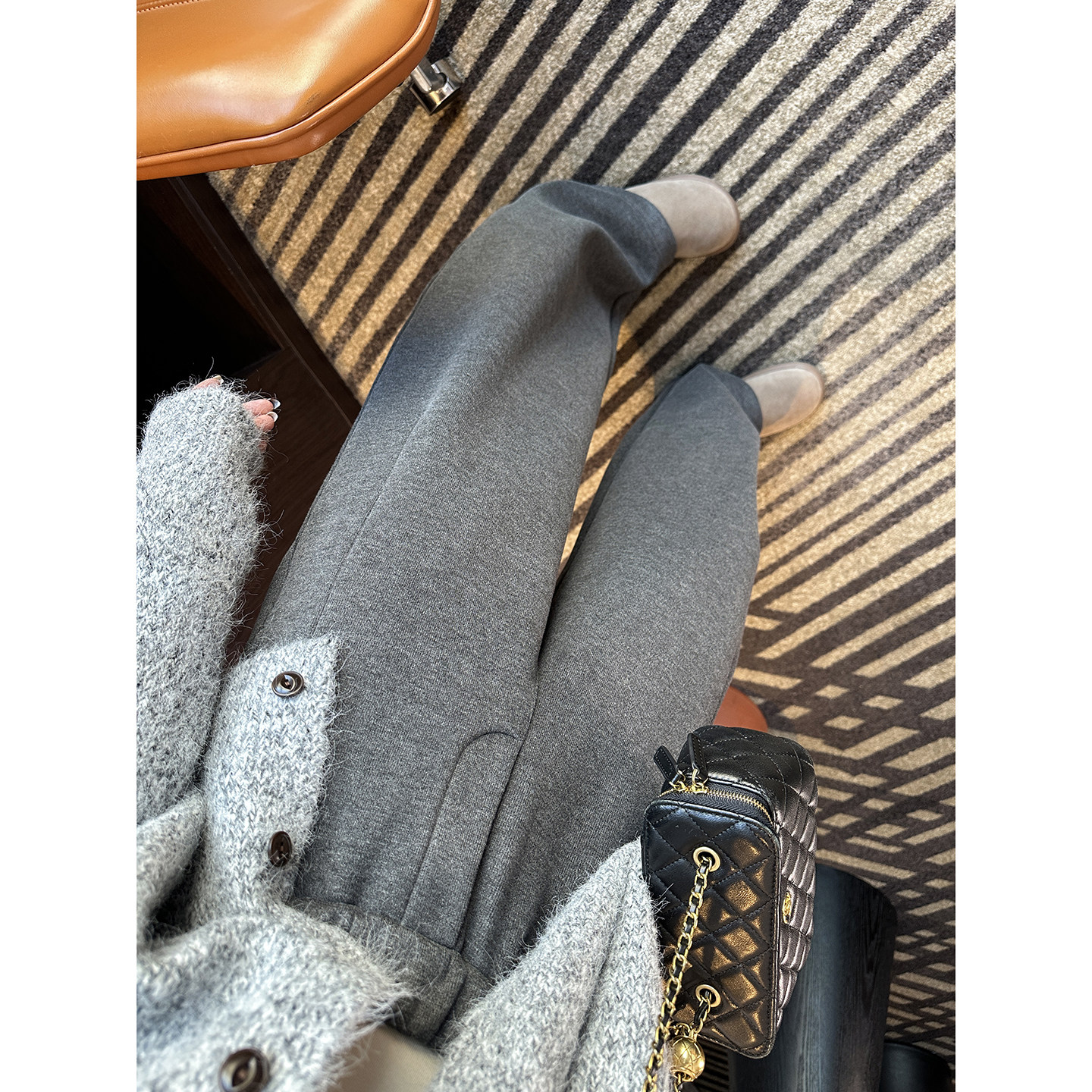 子女秋冬垂感两穿束脚灰色阔腿长裤 拯救腿型 加厚绒弯刀休闲裤