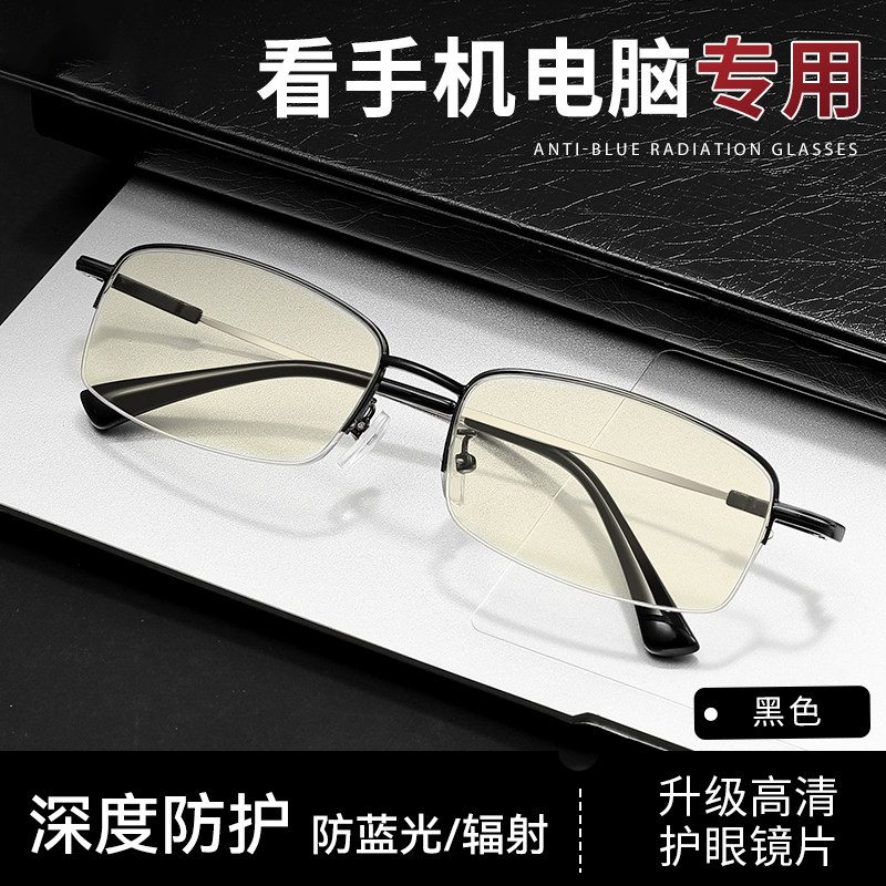感光男女防蓝光辐射抗疲劳平光眼镜半框护眼防近视无度数变色两用