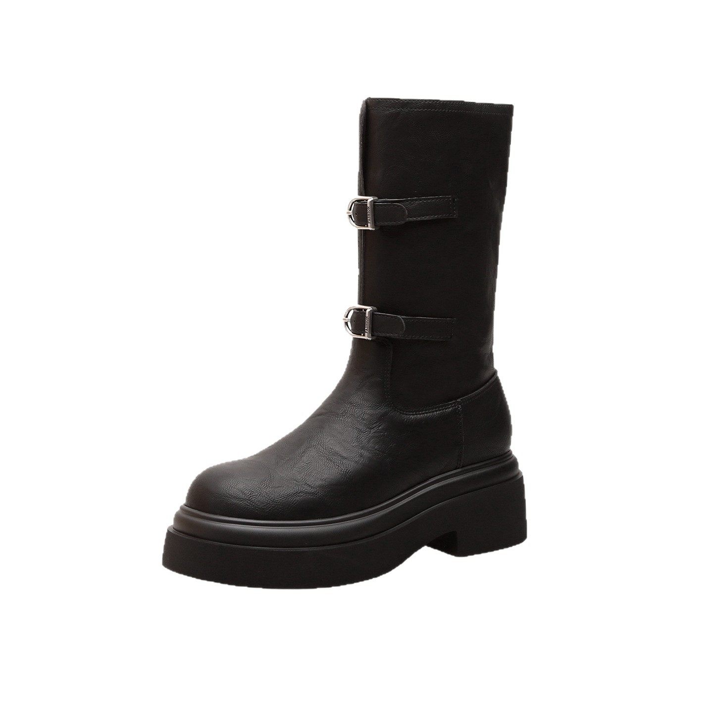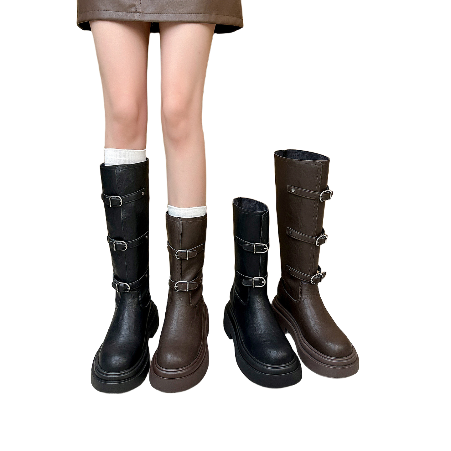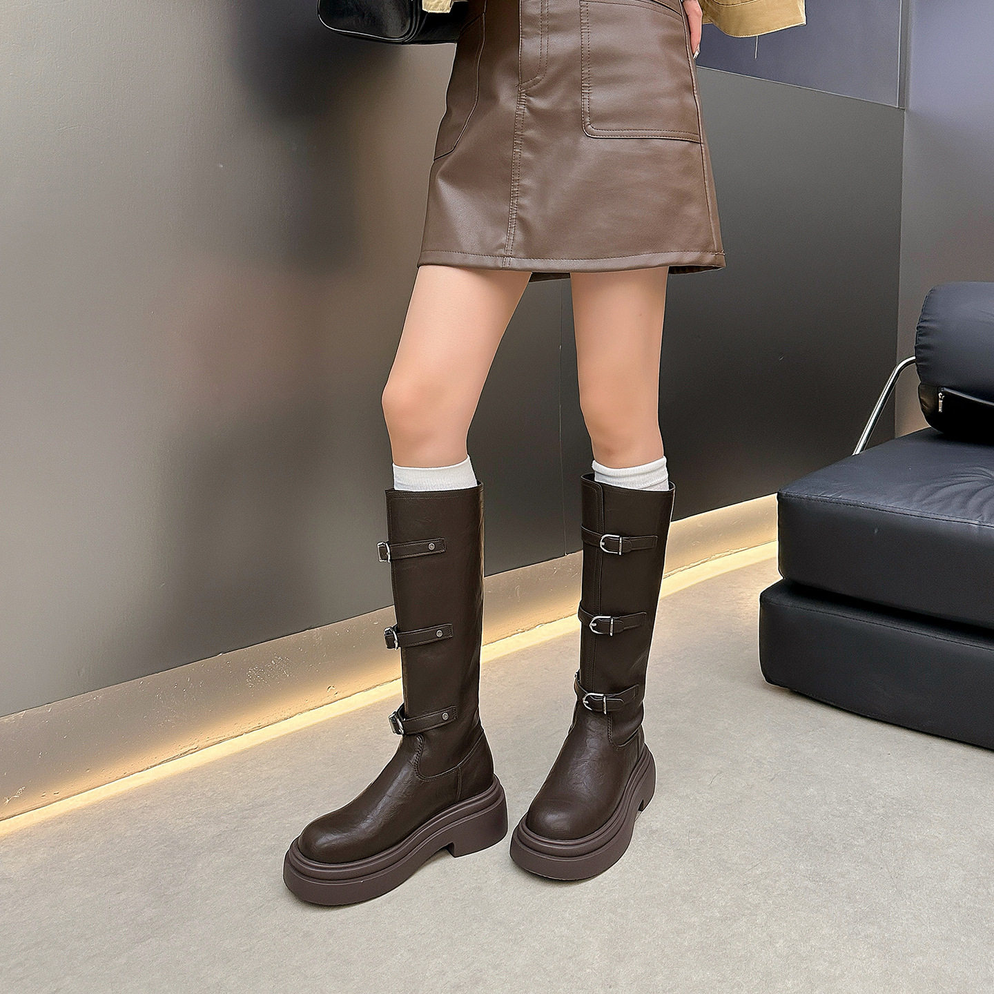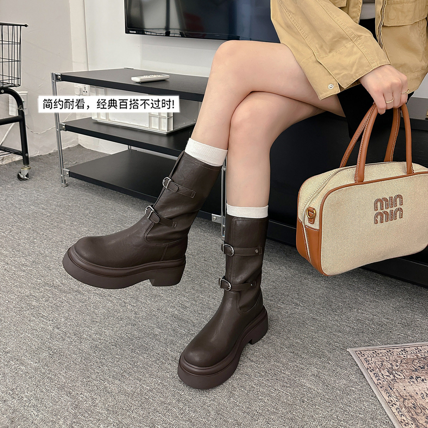 厚底美拉德洋气短靴女2025秋冬新款 英伦风靴子女长筒靴棕色马丁靴