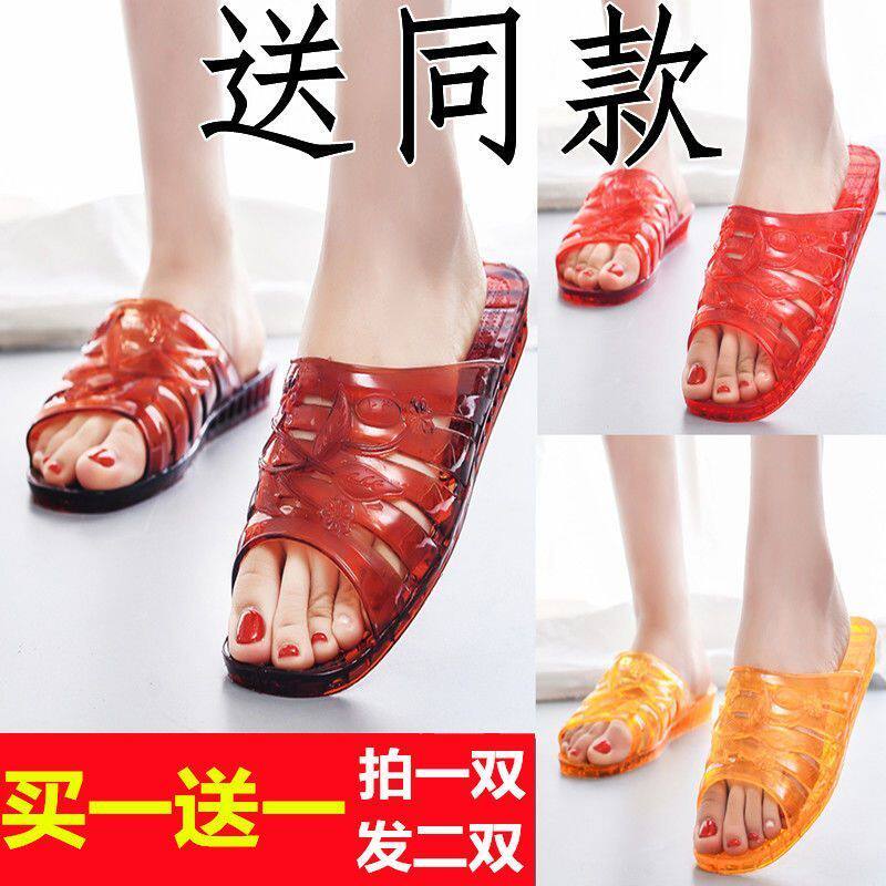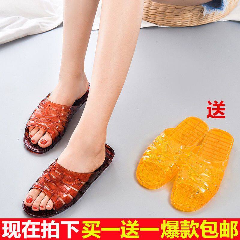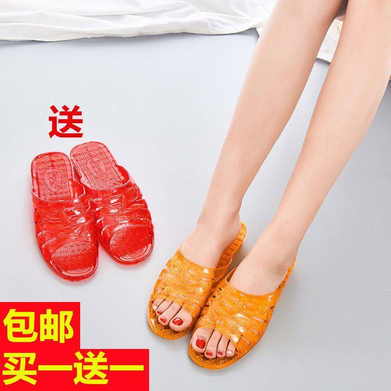 女士夏季 时尚 夏日懒人凉拖拖鞋 外穿厚底防滑浴室平跟 买一送一