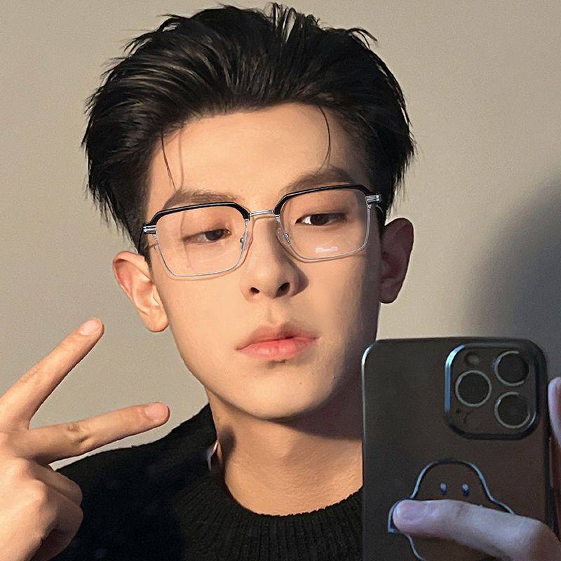 超轻纯钛半框近视眼镜框男款 网上可配度数镜片防蓝光变色眼睛镜架
