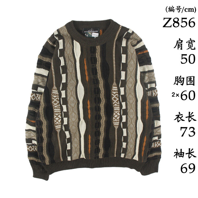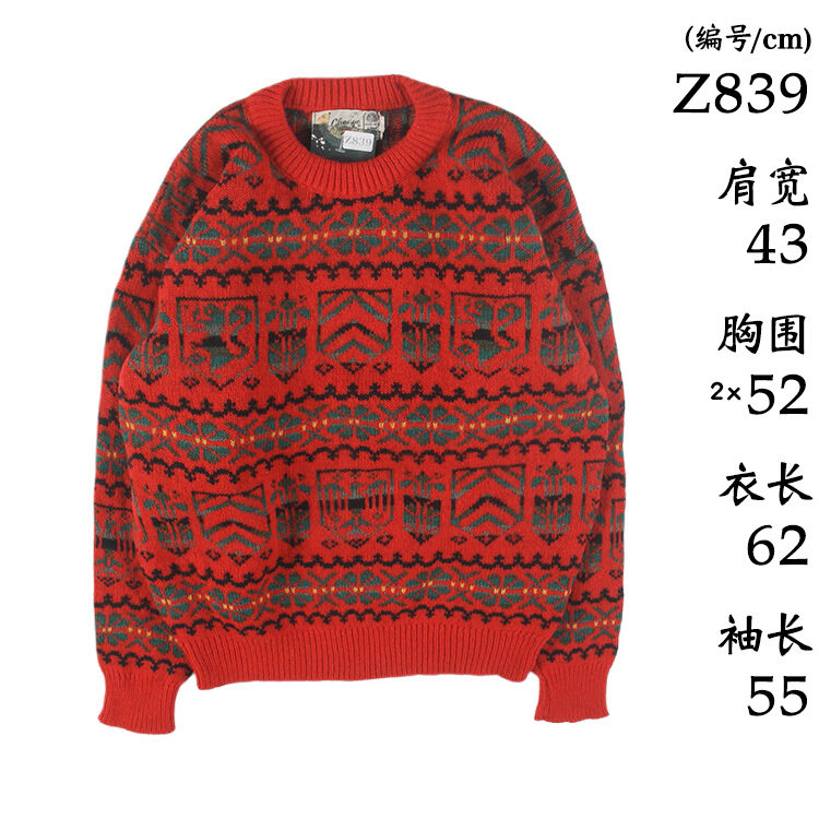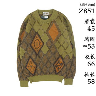 古着vintage复古日系宽松刺绣几何撞色波普图案纯羊毛衣男女秋冬9