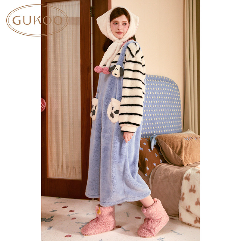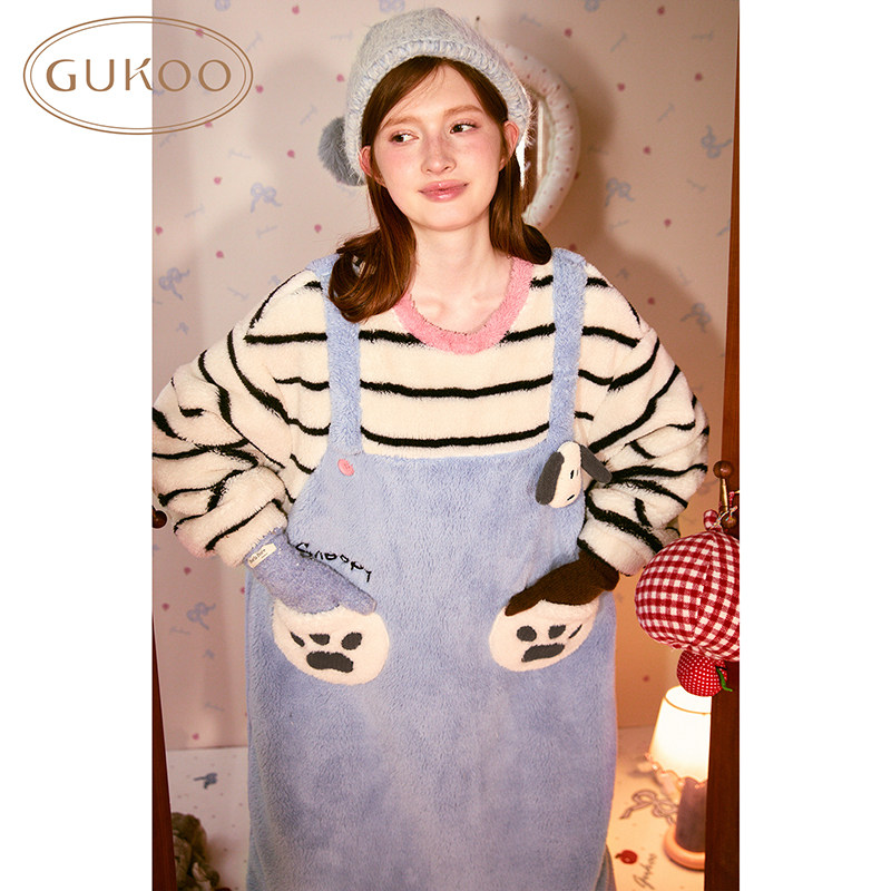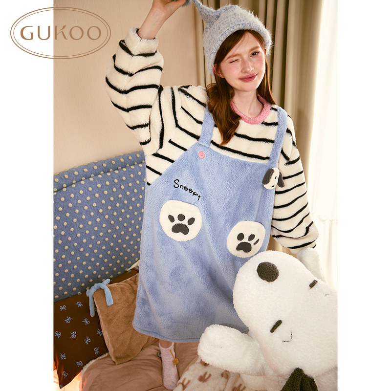 Gukoo 史努比联名条纹可外穿居家连体睡袍 果壳睡衣女冬款