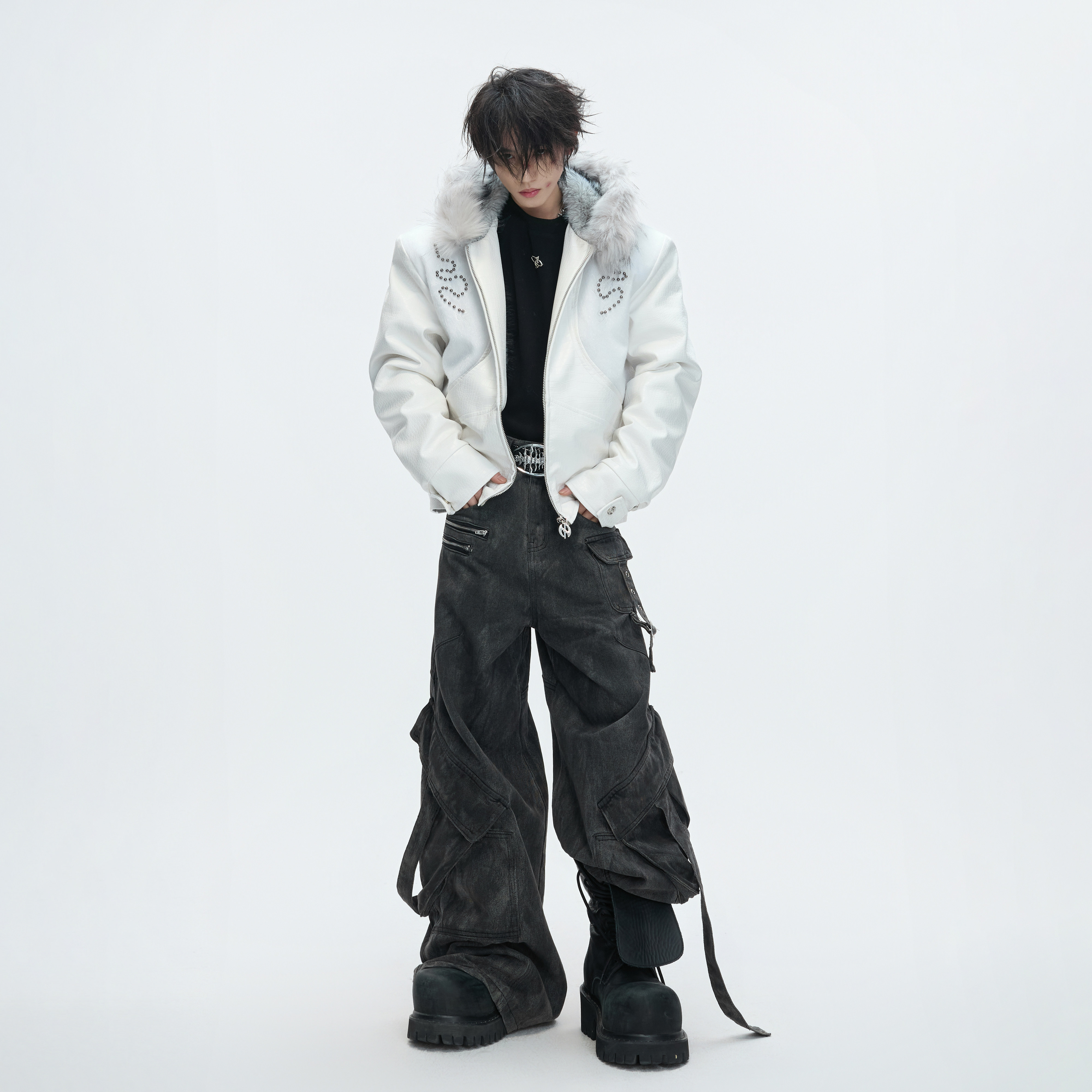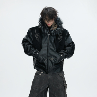 仿貂毛皮衣外套 休闲短款 Monster Guardians暗夜系列男子秋冬美式