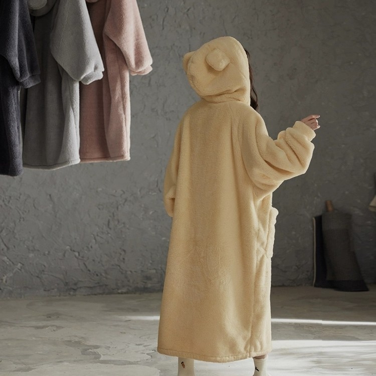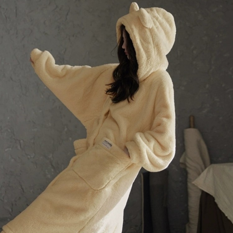 秋冬浴袍可穿浴巾女家用珊瑚绒吸水柔软速干浴裙洗澡睡袍睡衣连帽
