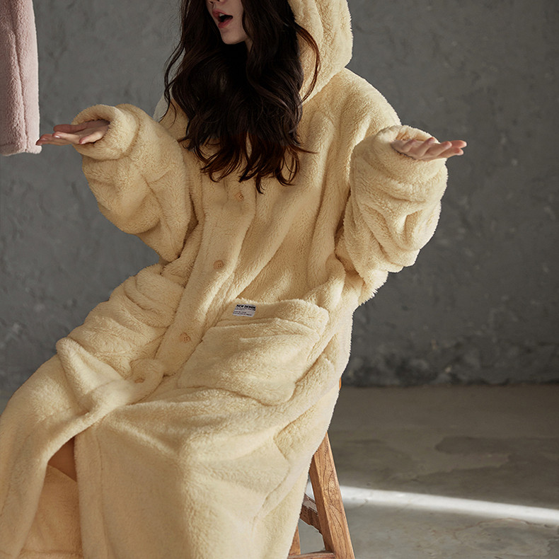 中长款 冬保暖睡衣家居服套装 睡袍毛绒浴袍加厚情侣款 三层加厚