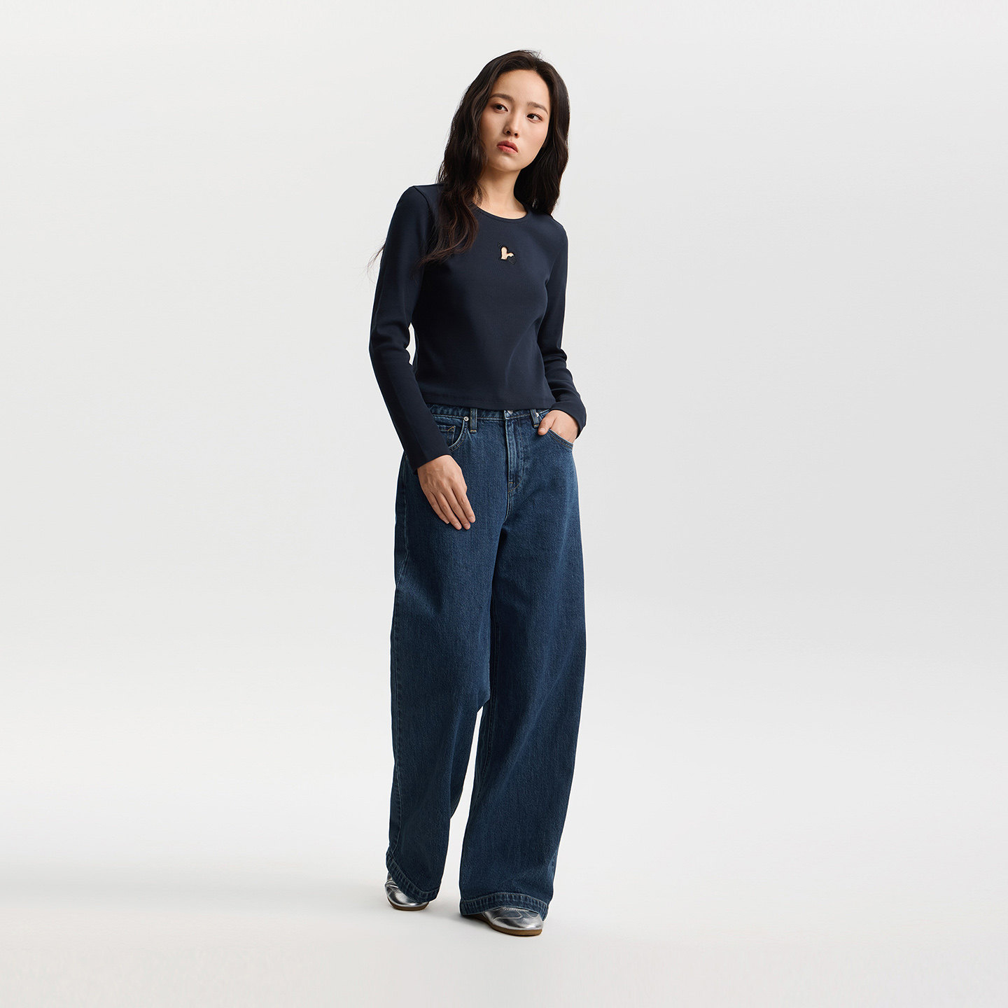 430超A阔腿牛仔裤 Lee26春夏新品 中腰中深蓝女潮流 张凌赫代言