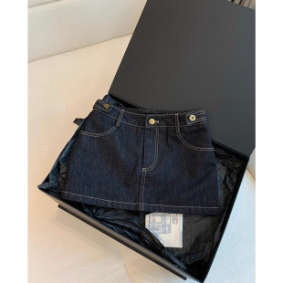 韩系拉链俏皮少女休闲短裙子 细闪牛仔裙