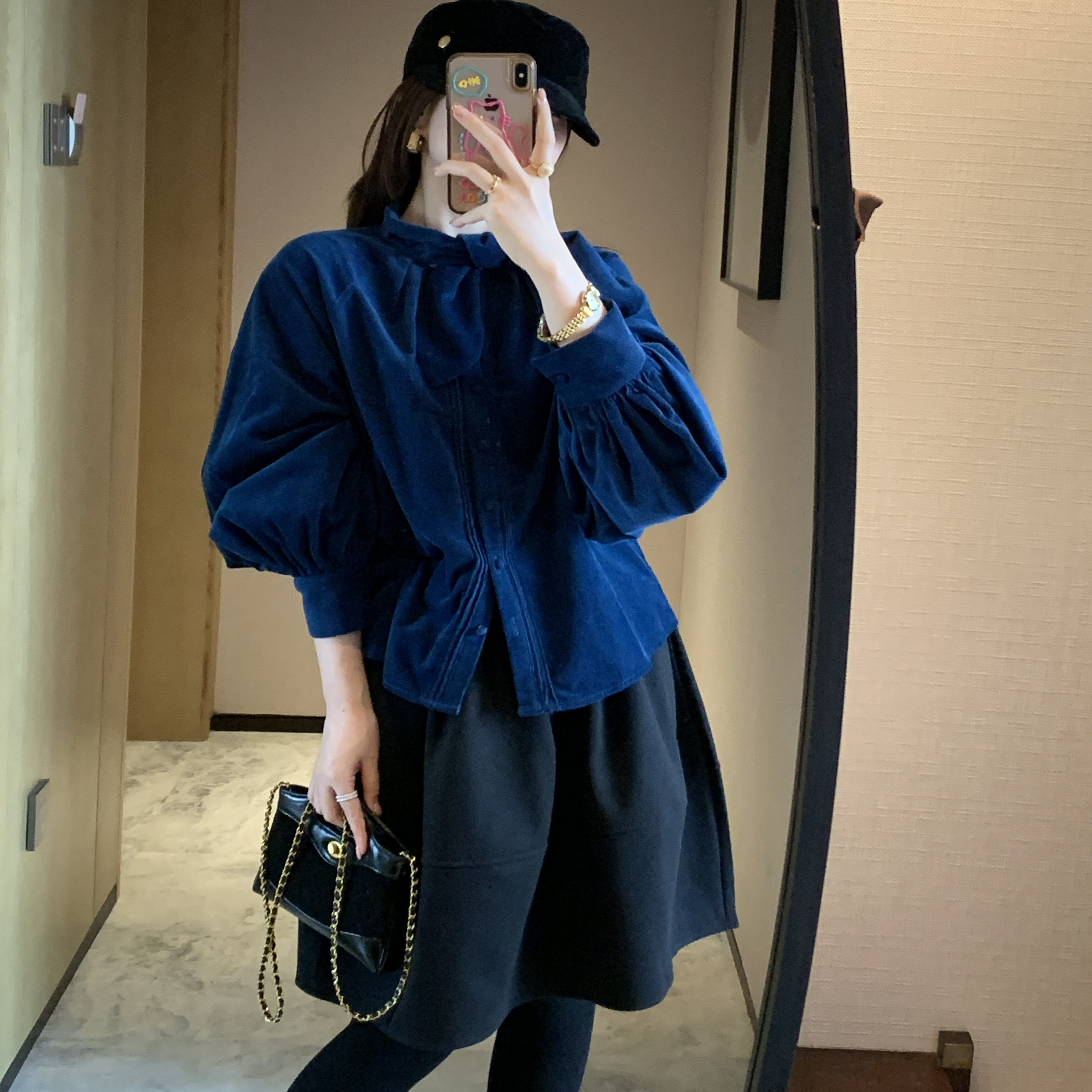长袖 领口飘带设计感韩版 纽扣上衣 休闲百搭复古灯芯绒衬衫 2025新款