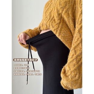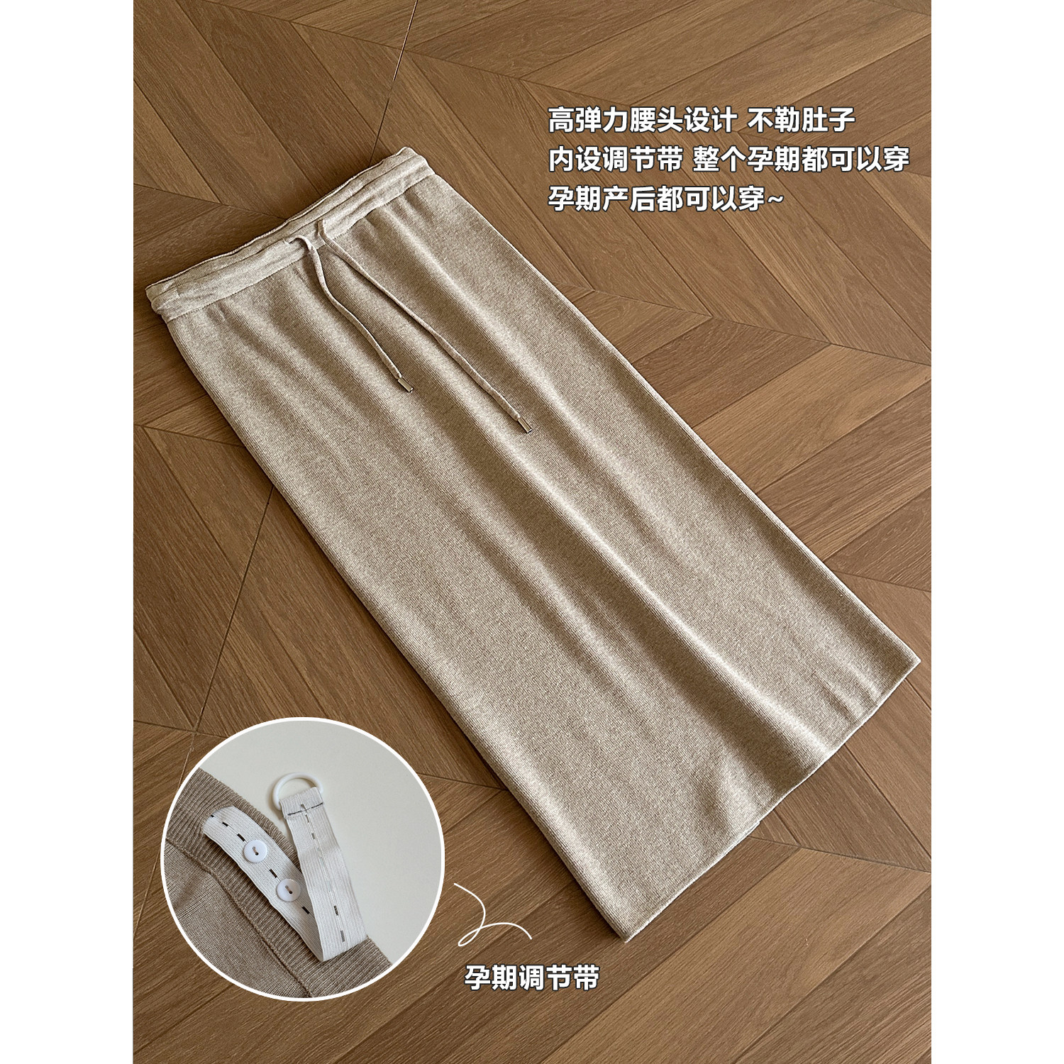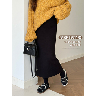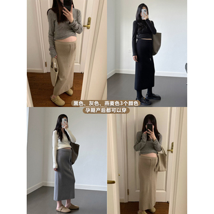 无托腹灰色孕妇针织半身裙女秋冬季 小个子孕期开叉直筒裙子 中长款