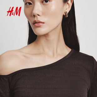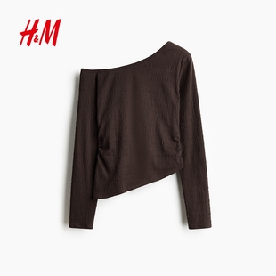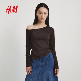 时尚 HM女装 不对称单肩设计感长袖 新款 上衣1322653 T恤2026春季