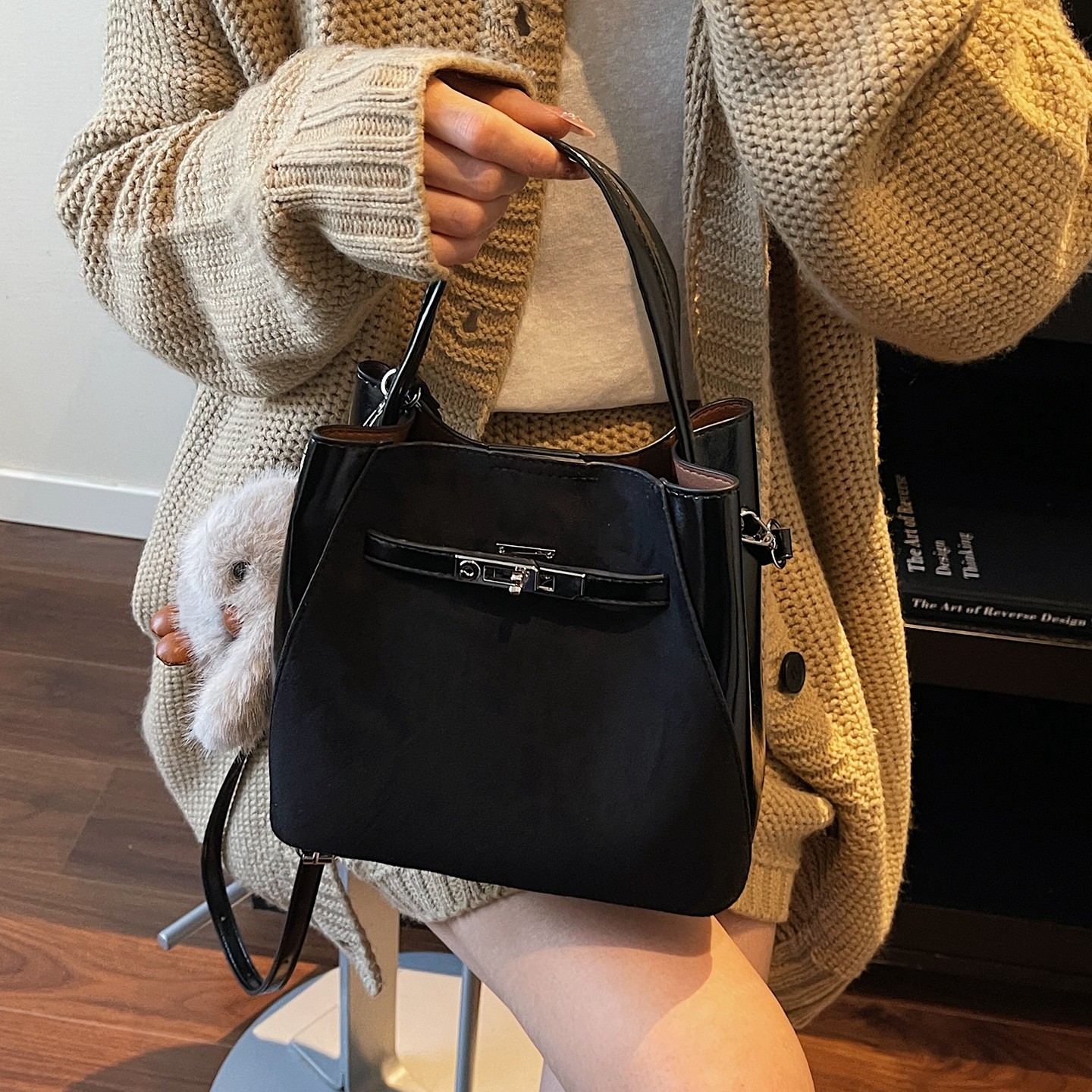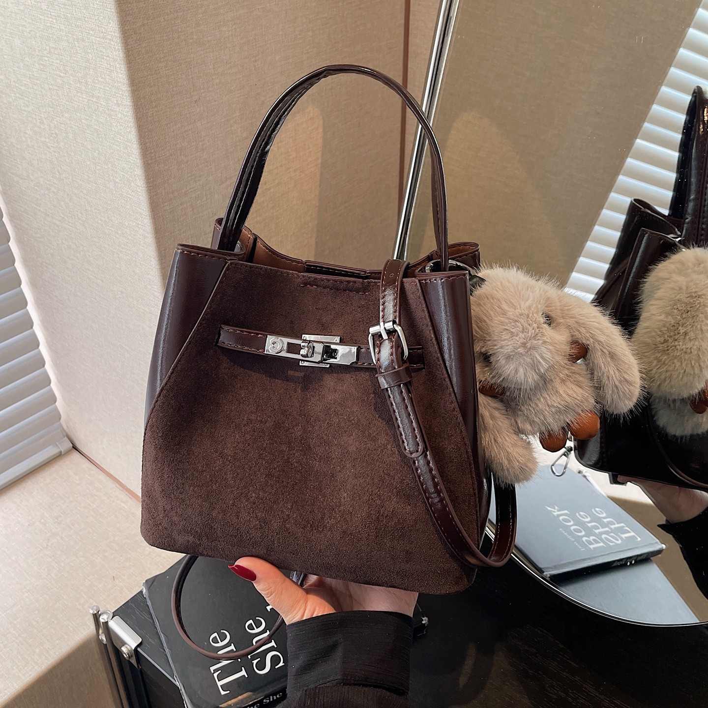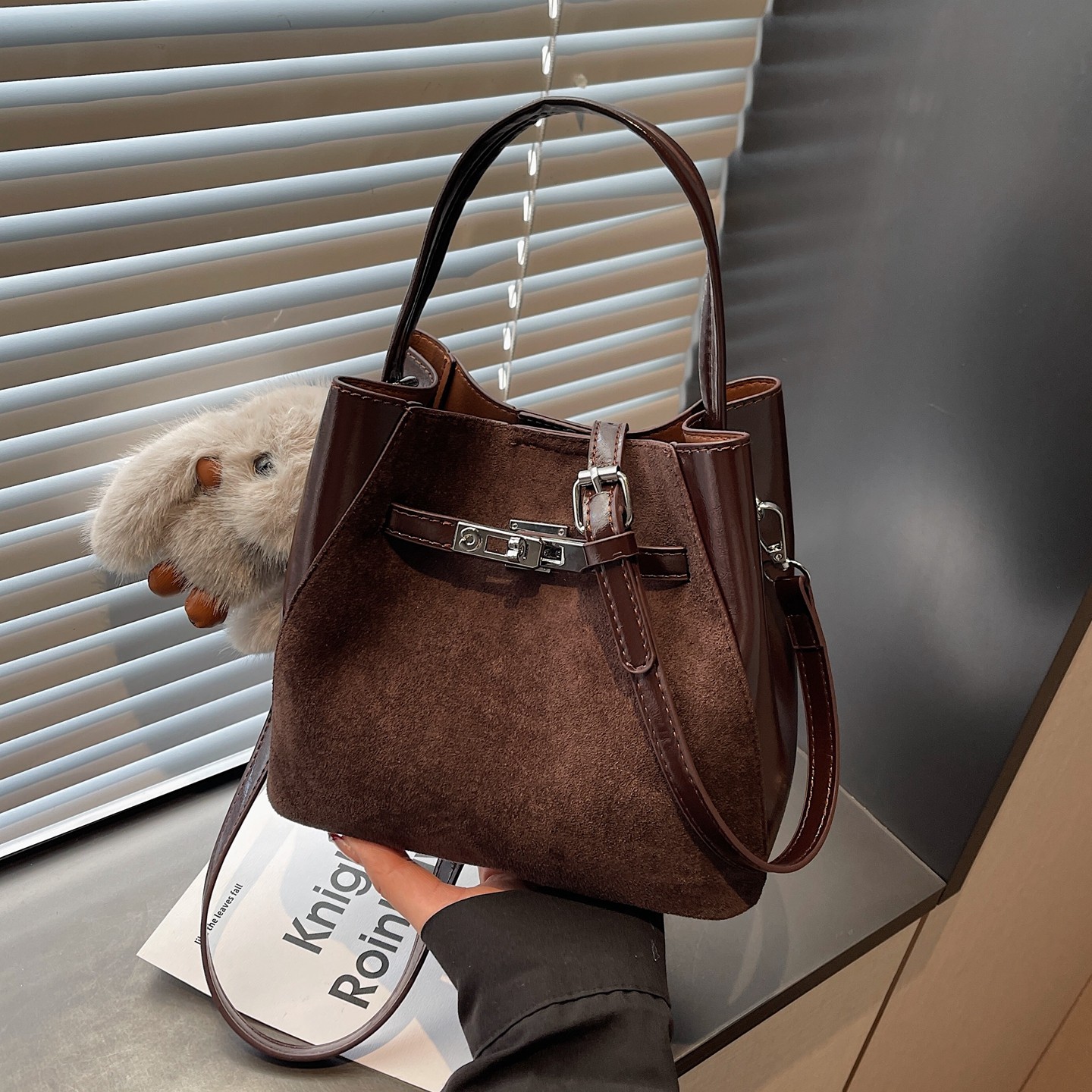 美拉德复古麂皮包包女2025新款 秋冬百搭通勤斜挎包女士手提水桶包
