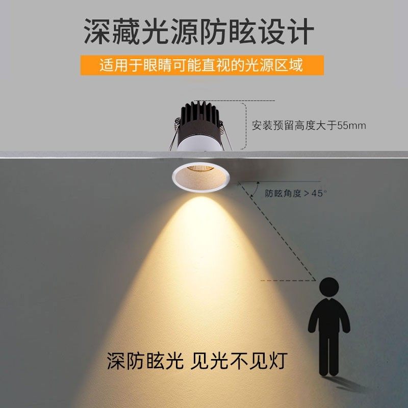 射灯LED天花灯嵌入式 超亮COB家用孔灯筒灯3W5W7W9W12W18W商用聚光