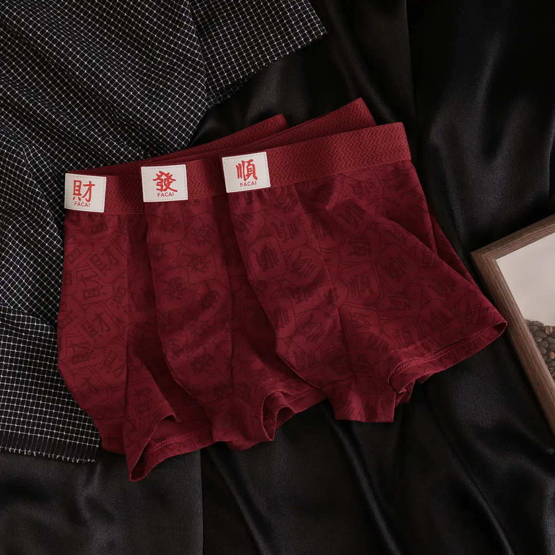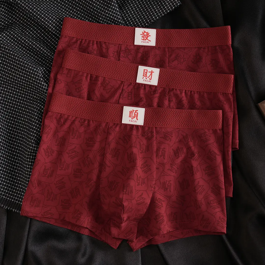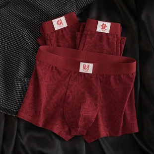 男士 马年平角短裤 红色四角裤 新款 男生 头大码 七匹狼纯棉本命年内裤