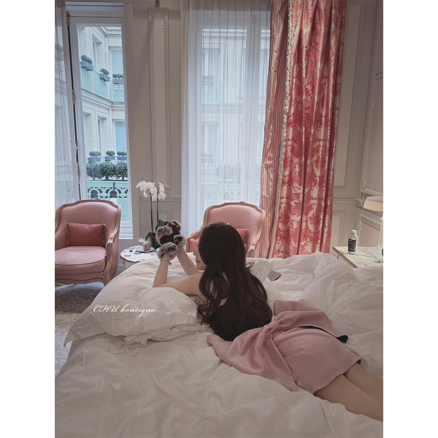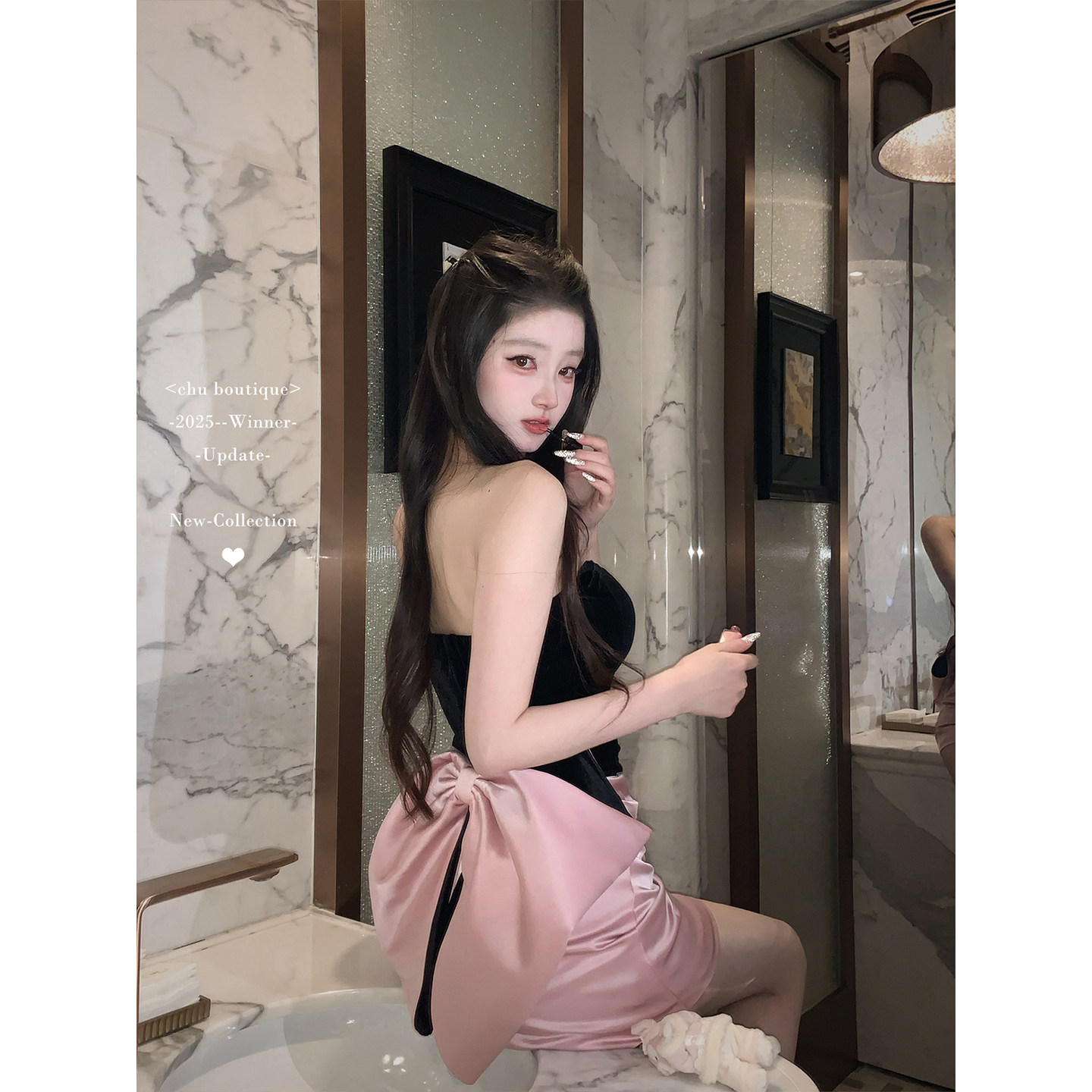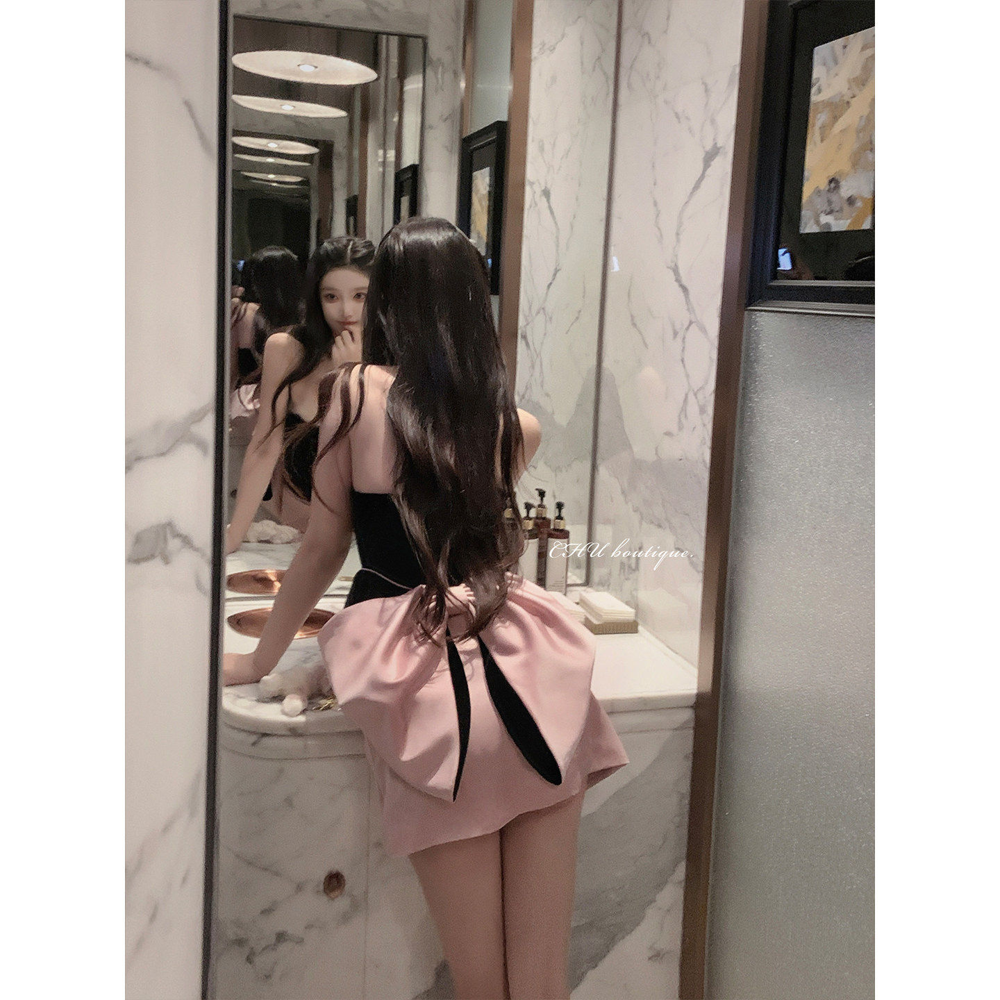 超大蝴蝶结 娇俏猫猫裙 撞色抹胸连衣裙 很嗲 CHU小初