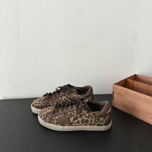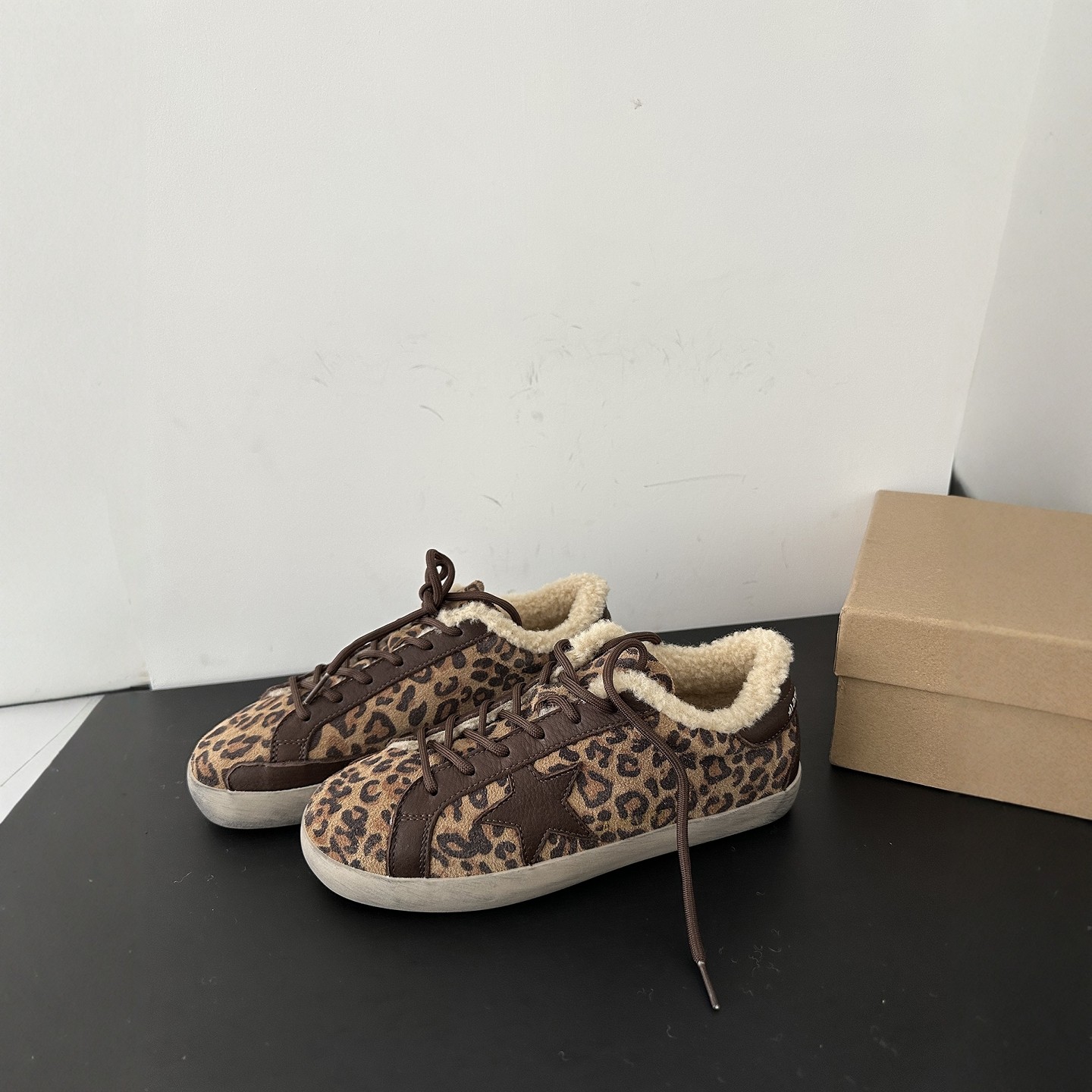 运动鞋 德训鞋 女2025秋冬豹纹加绒真皮休闲板鞋 复古做旧星星小脏鞋