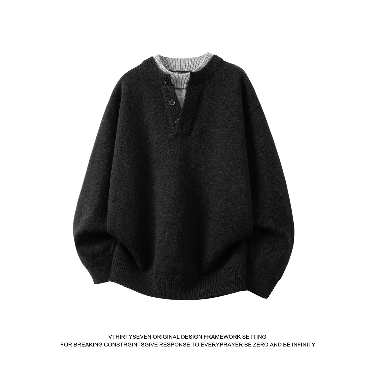 毛衣 半高领软糯宽松套头针织打底衫 双股加厚100%纯羊毛衫 男秋冬季