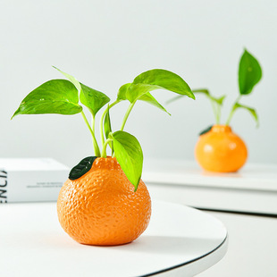 仿真橘子小花瓶摆件客厅插花水培植物鲜花绿萝高颜值桌面装 饰摆件