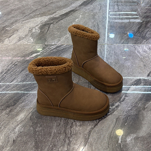防水加厚两穿棉鞋 极简百搭 真皮厚底防水高帮雪地靴女2025冬新款