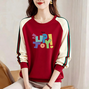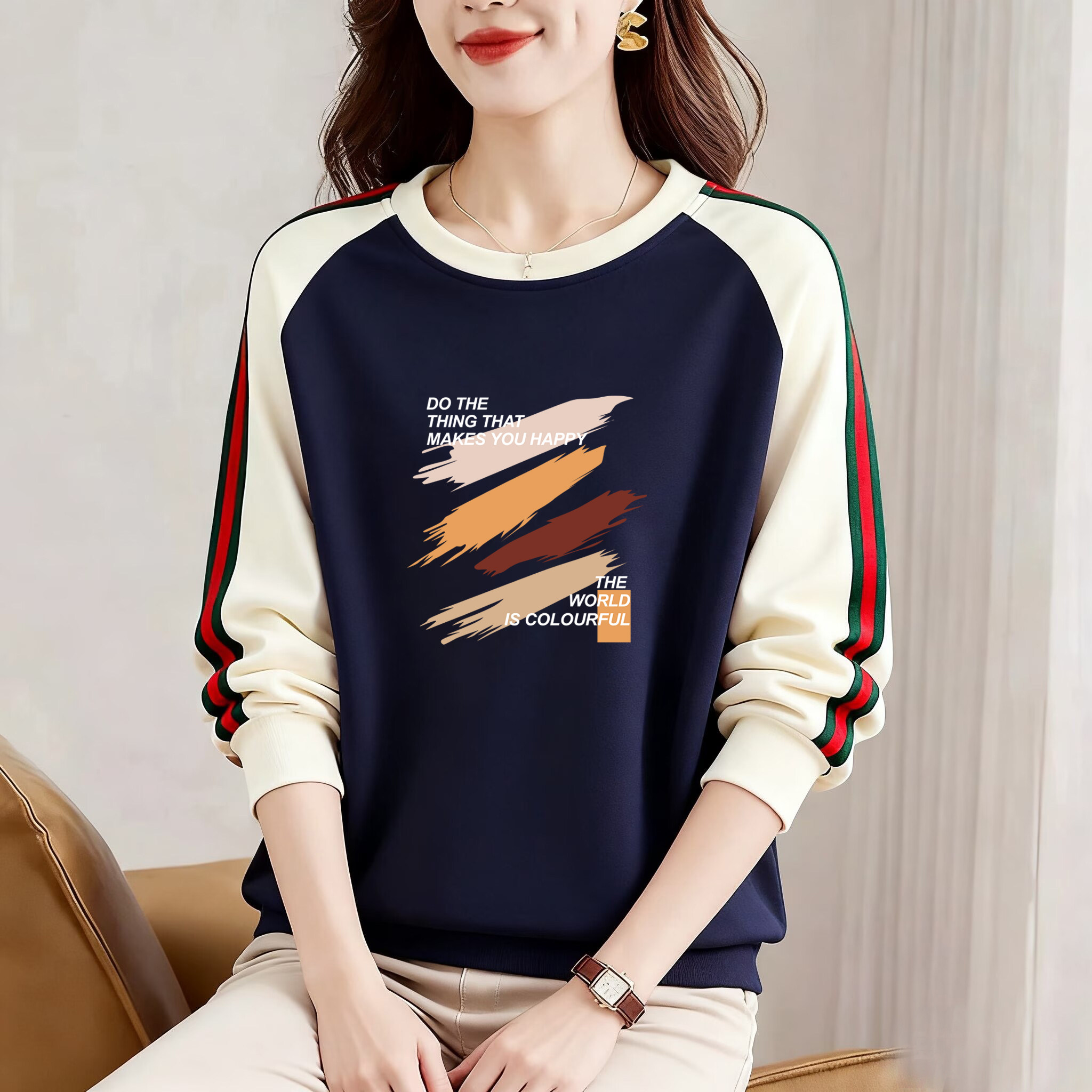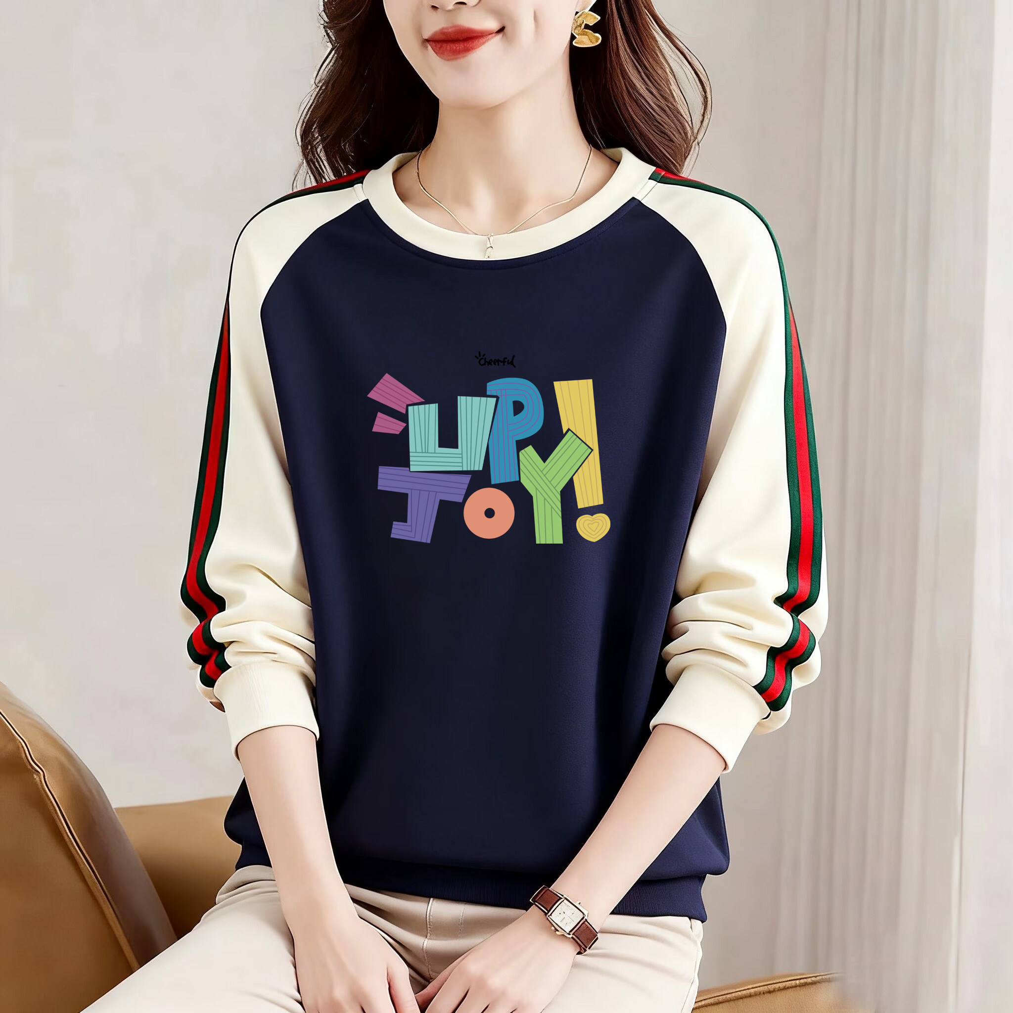 外贸品牌出口纯棉秋冬长袖 打底卫衣女拼色休闲宽松显瘦洋气上衣潮