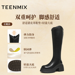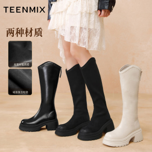 田曦薇章若楠同款 百丽双子星骑士高长筒靴冬加绒大筒围显瘦女鞋