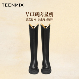 加绒大筒围V口骑士长靴女 百思图流浪者冬商场新款 关晓彤同款