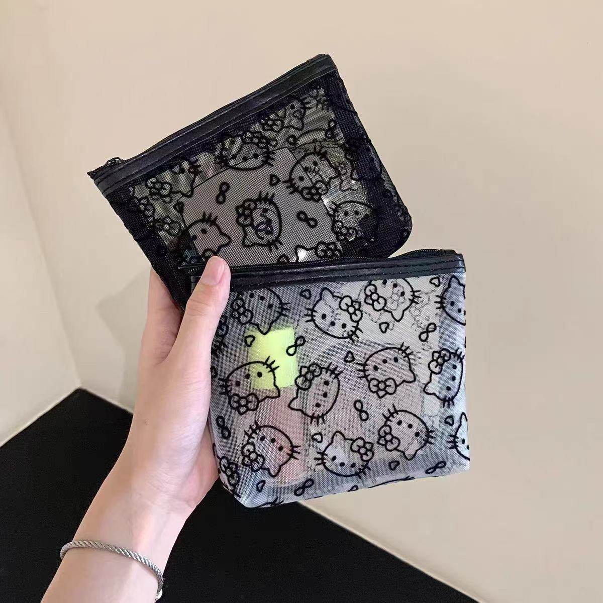 透明网纱kitty补妆包便携外出化妆包收纳旅行实用零钱包耳机包