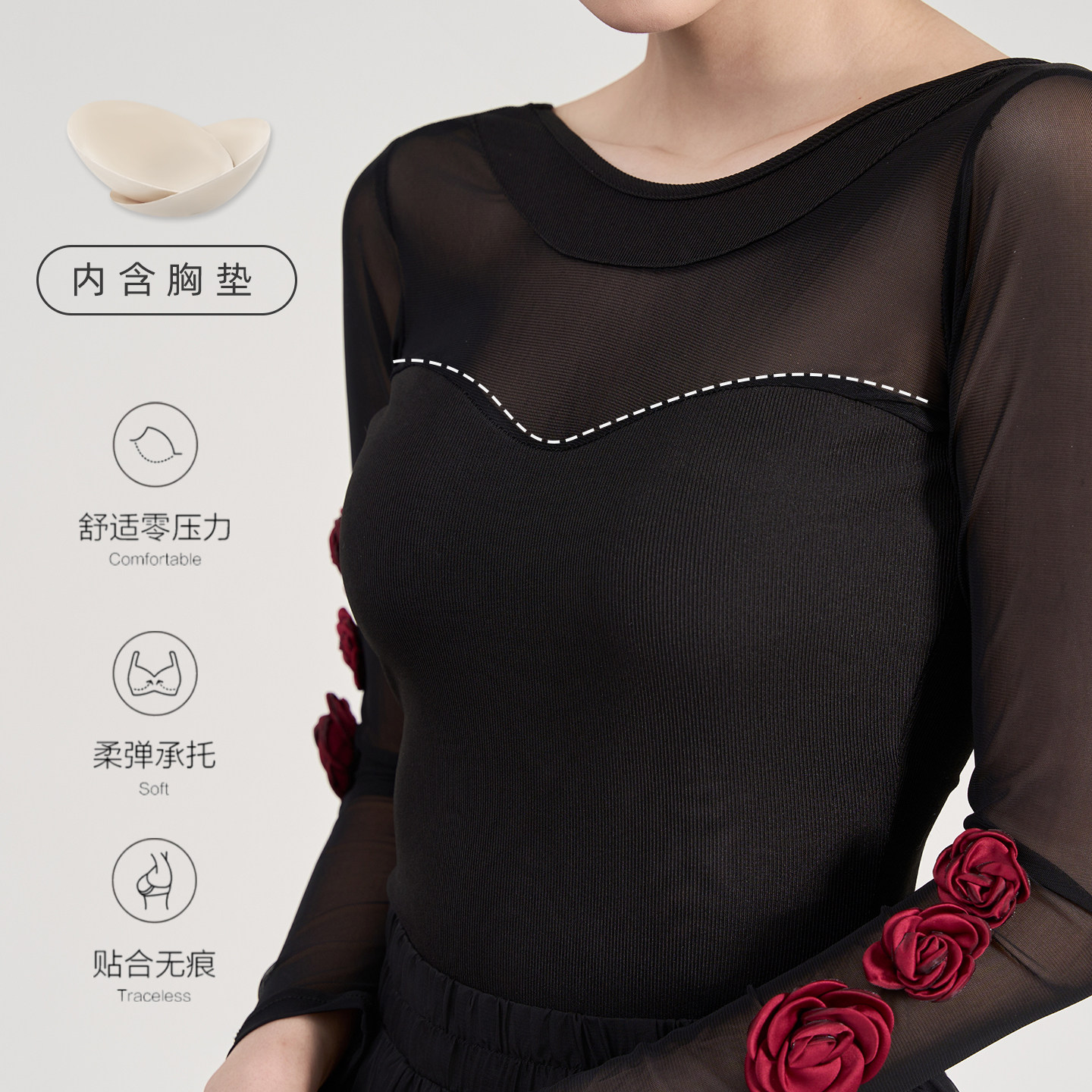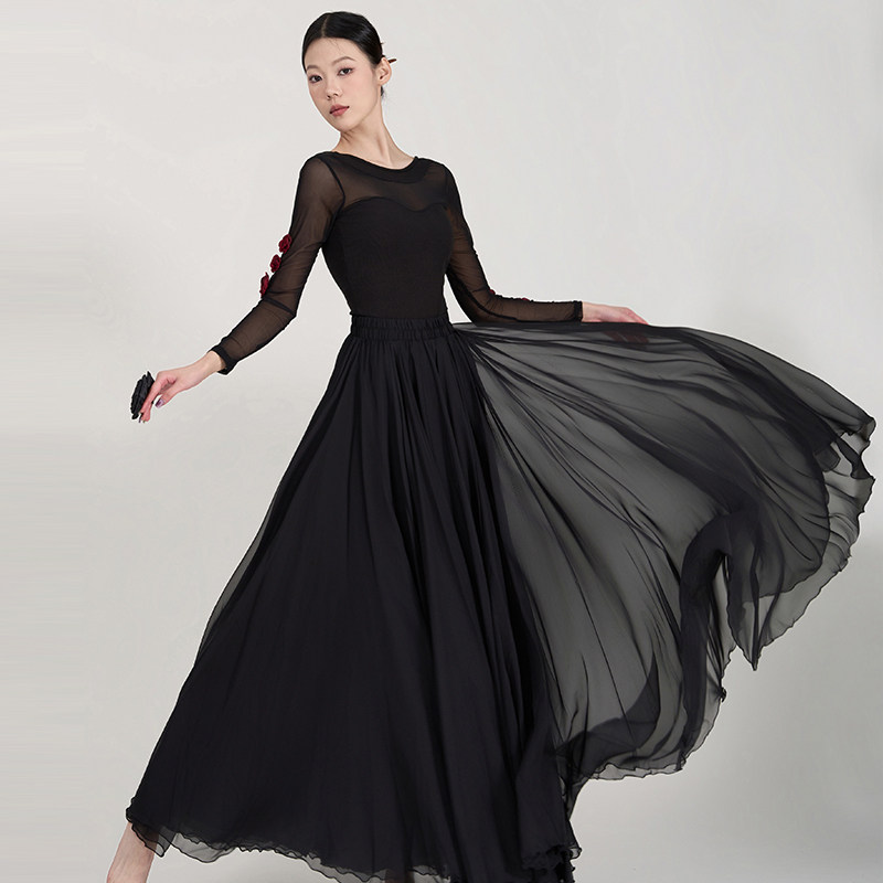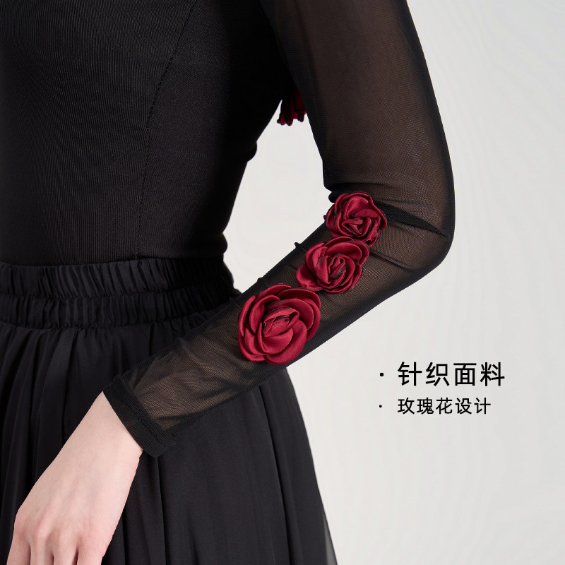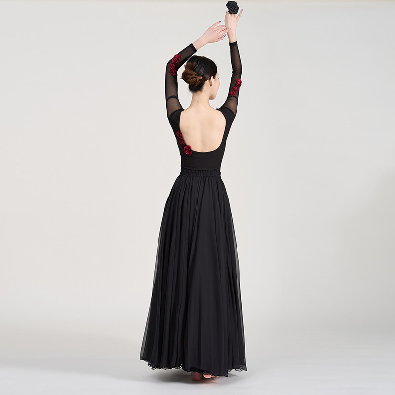 黑古风爵士长袖 形体中国舞形体服民族风表演服立体花朵露背连体服