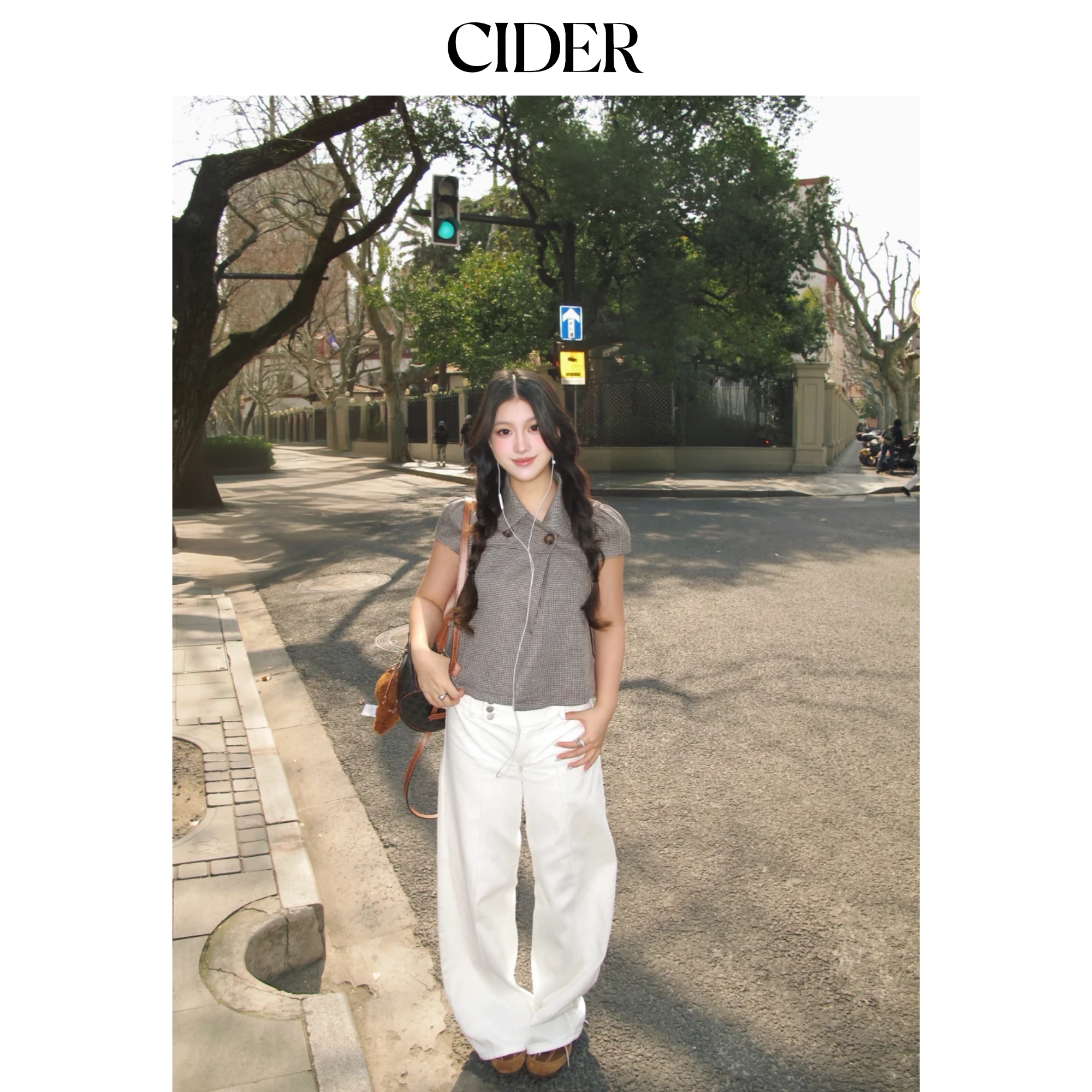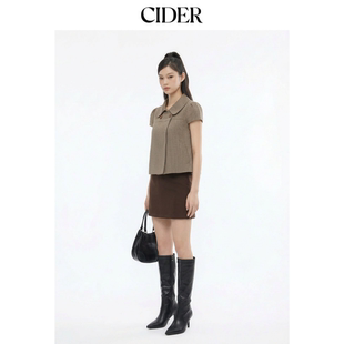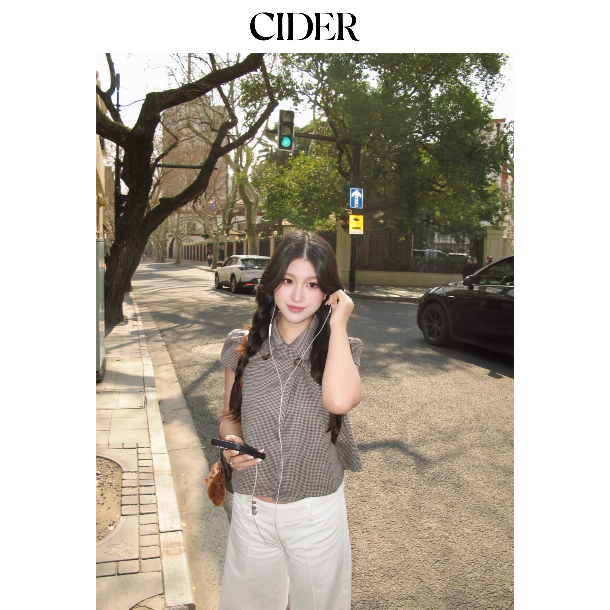 CIDER彼得潘领外套格子衬衫 上衣114740919 复古波点翻领格纹短袖