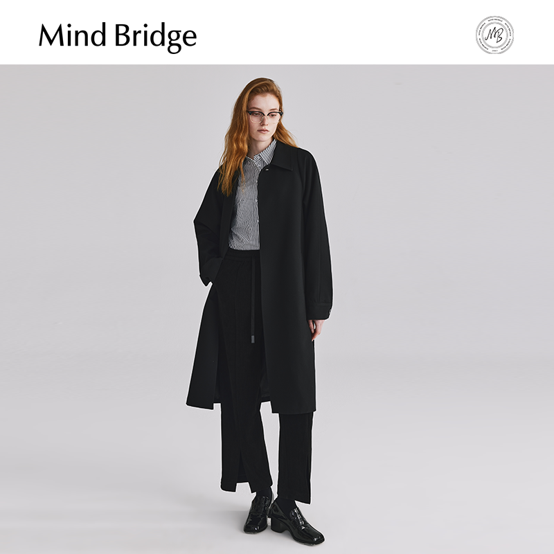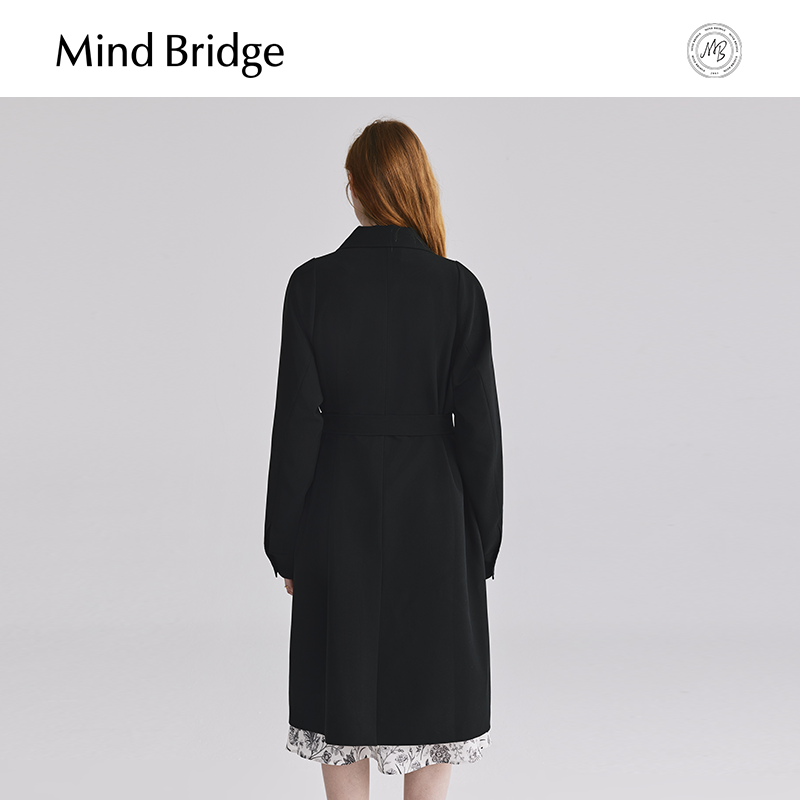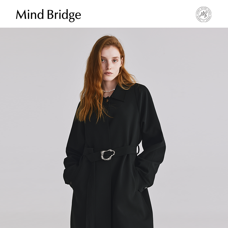 立领风衣外套 配腰带夹棉秋冬毛呢长款 PMET 多形态翻领毛呢大衣