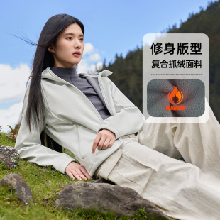 骆驼户外软壳衣外套男秋冬加绒加厚防风防水运动夹克连帽登山服女