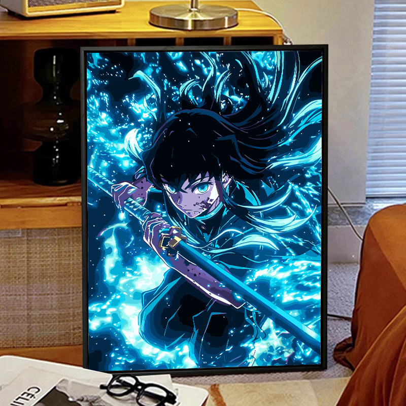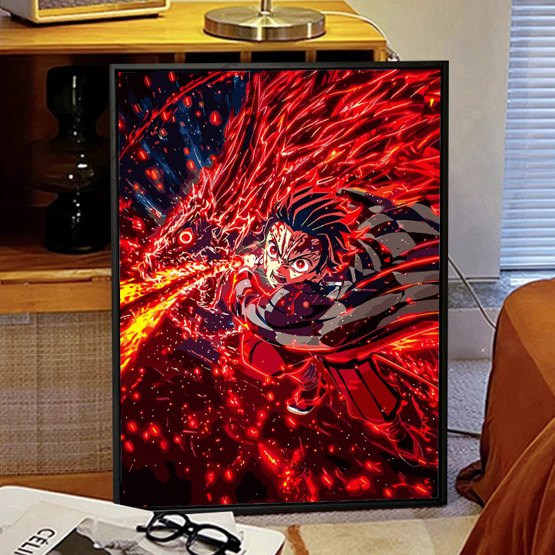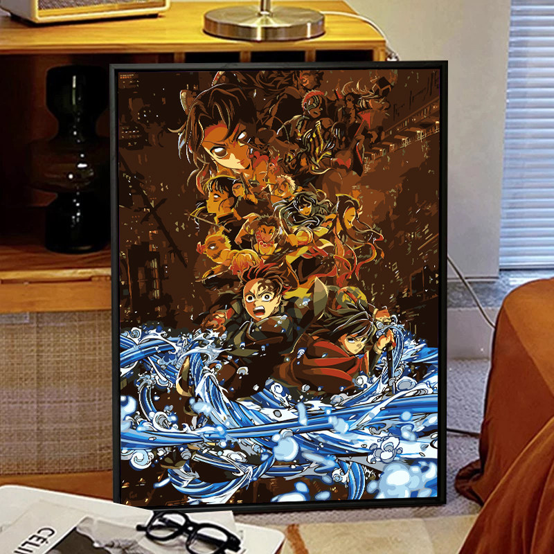 鬼灭之刃无限城数字油画diy填涂色手工绘卡通超燃动漫油彩装 饰画