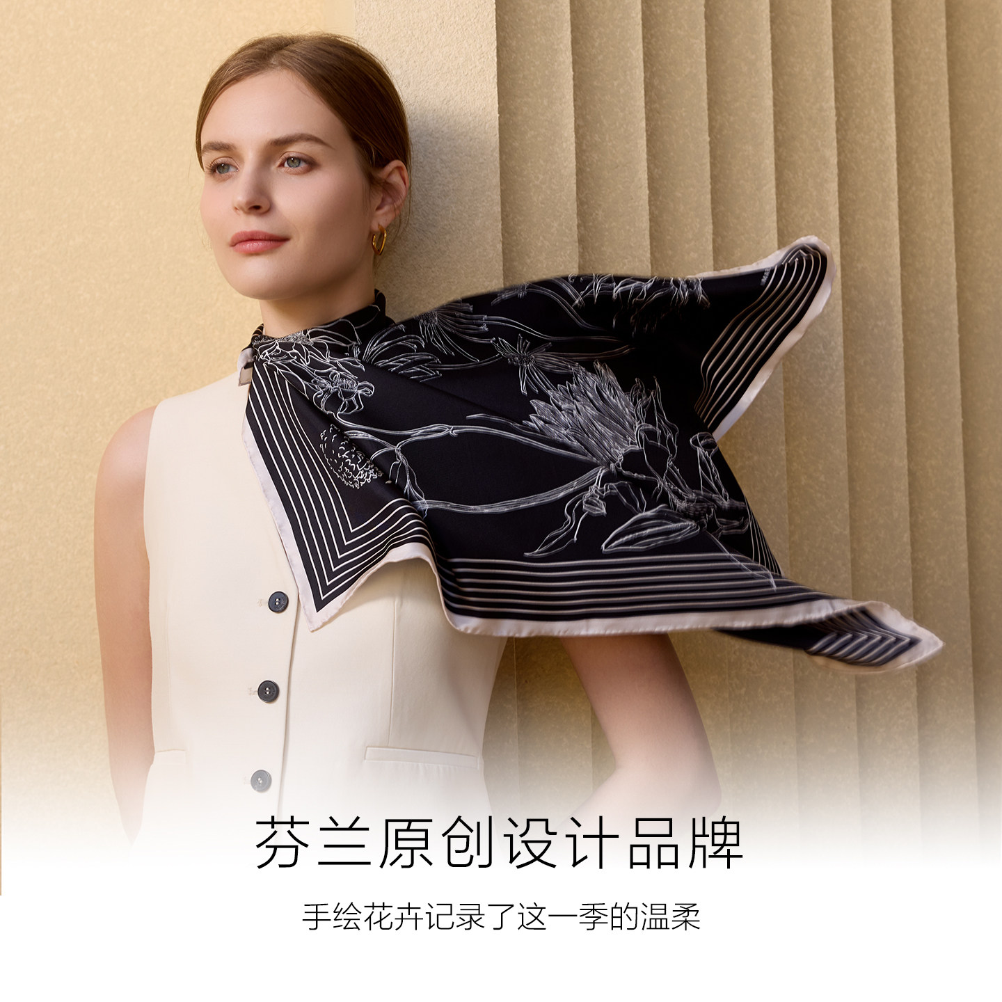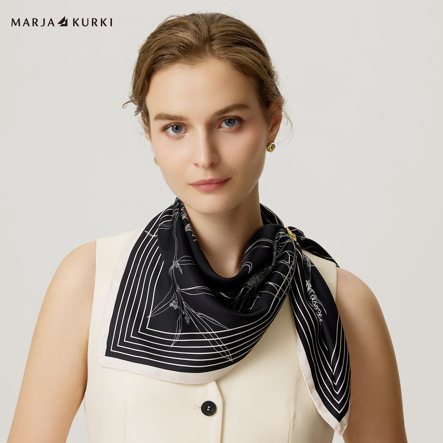 MARJAKURKI玛丽亚古琦真丝丝巾搭配衬衫 小方巾系脖 高级感领巾时尚