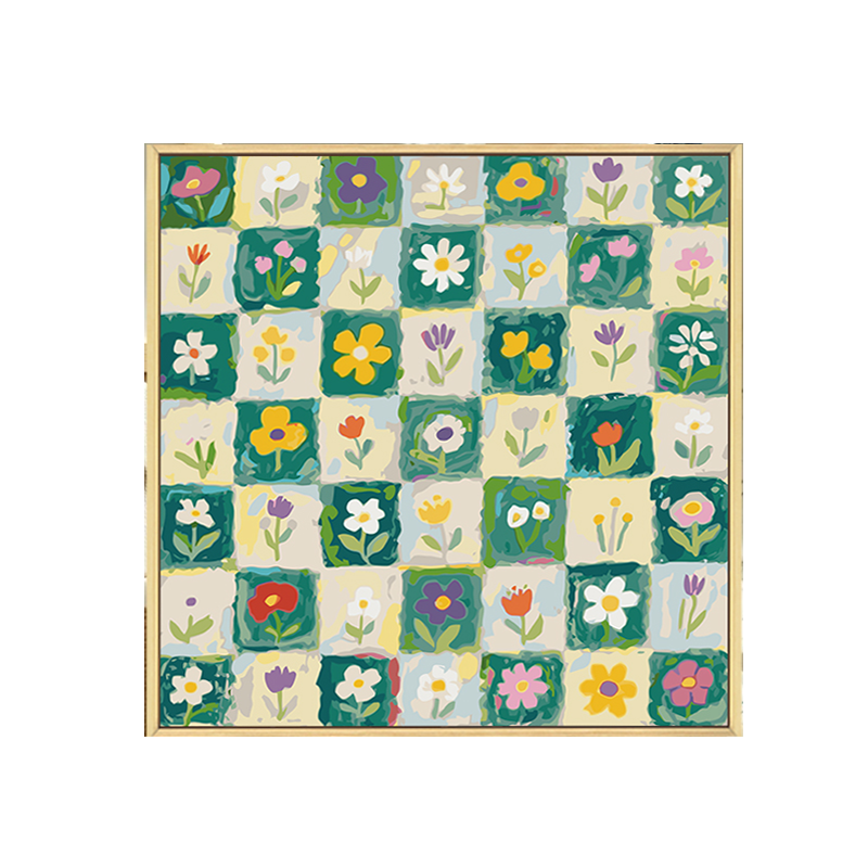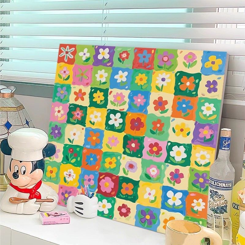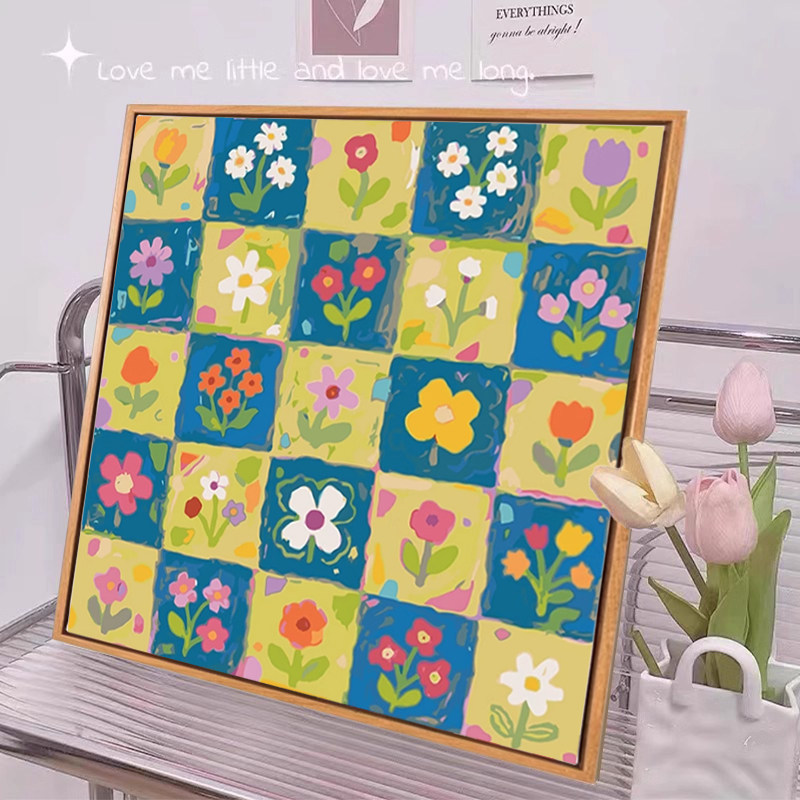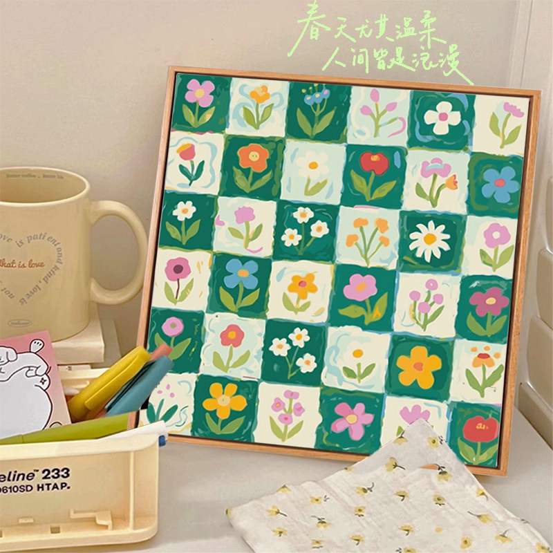 格子花朵数字油画diy手工涂色ins风小清新高级氛围感多巴胺装 饰画