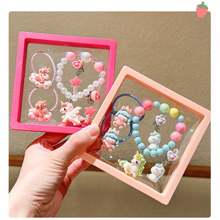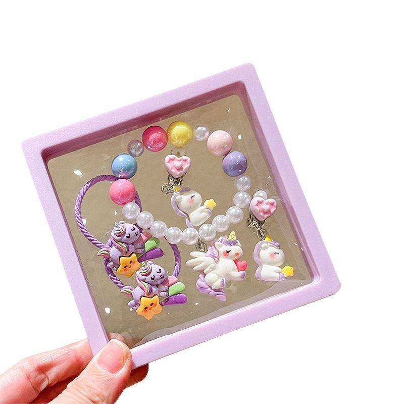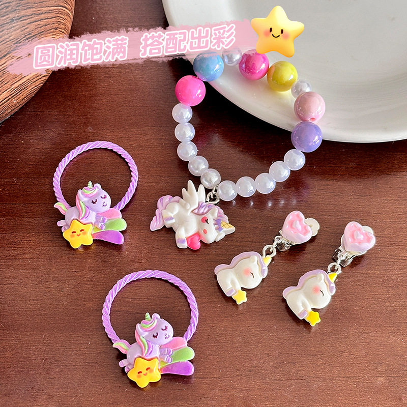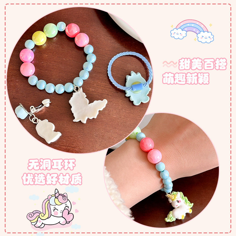 饰品儿童手链套装 独角兽鱼尾手串珠饰品可爱宝宝耳夹首饰礼盒