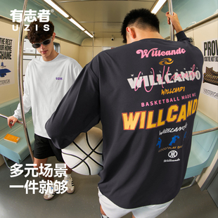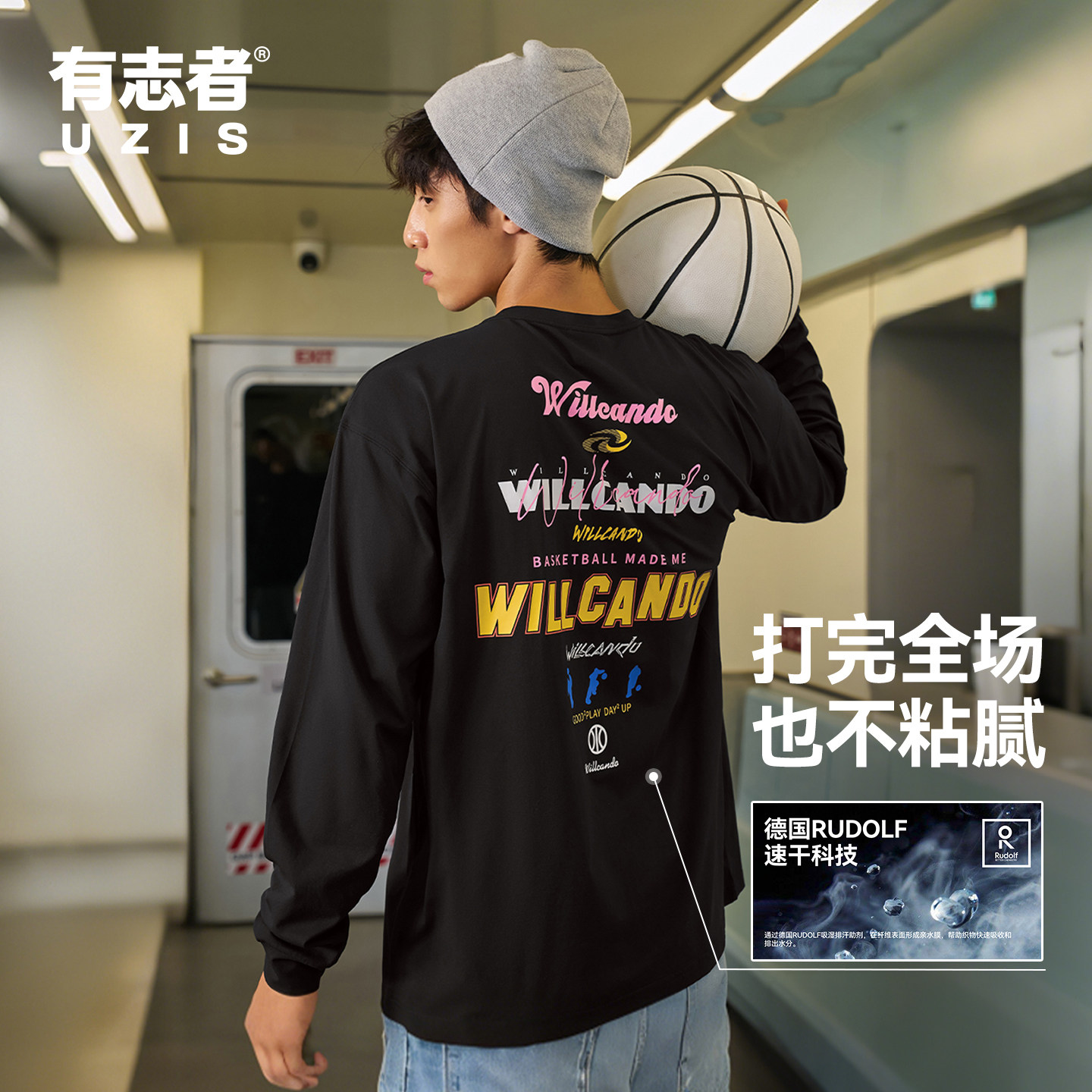 有志者UZIS美式 男T恤篮球运动宽松速干白色休闲上衣缤纷 潮流长袖