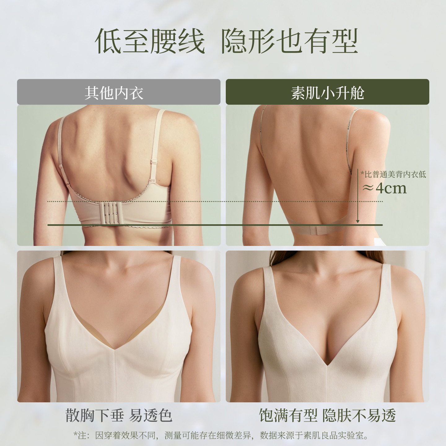 素肌良品深V美背内衣无痕露背吊带隐形粉底液细肩带挂脖聚拢文胸