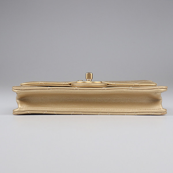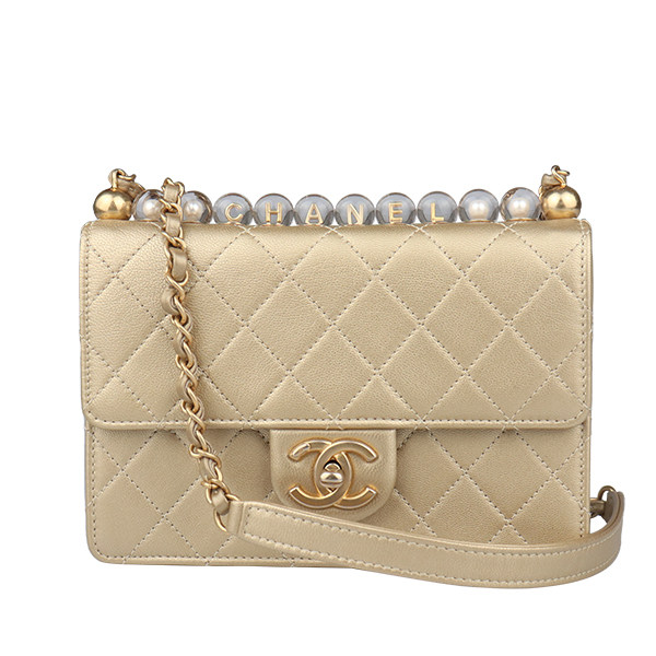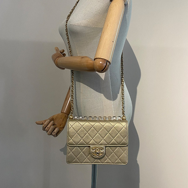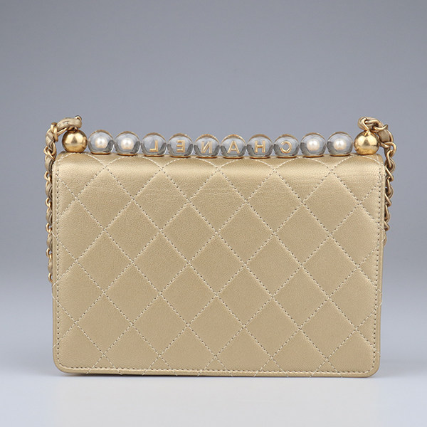 中古9新CHANEL香奈儿透明珍珠LOGO口盖山羊皮斜挎包 自营