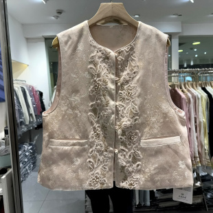 正品 CZ26010 门禁重工钉珠亮片刺绣花圆领国风马甲外套欧货春装