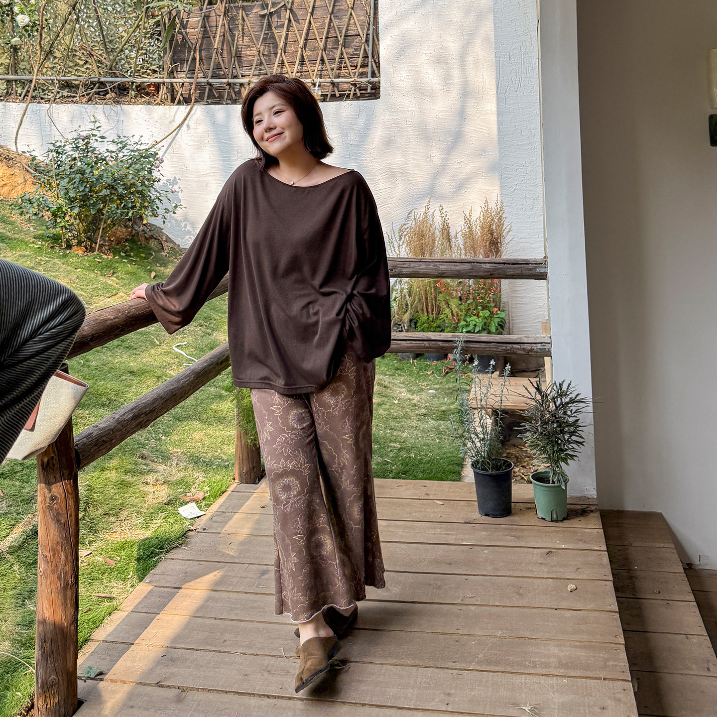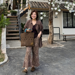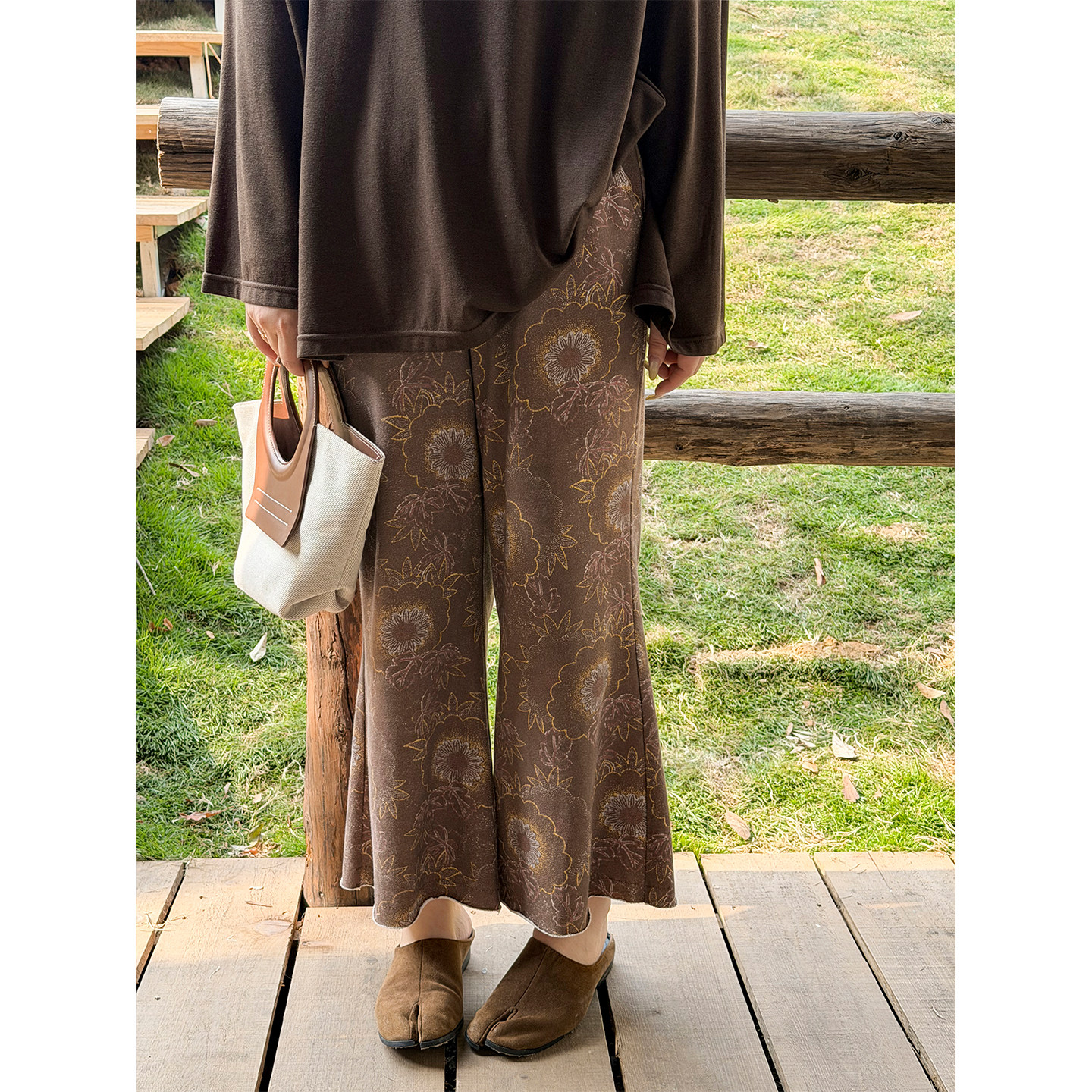 春夏200斤松紧腰舒适休闲裤 女装 木子理想大码 胖mm印花九分喇叭裤