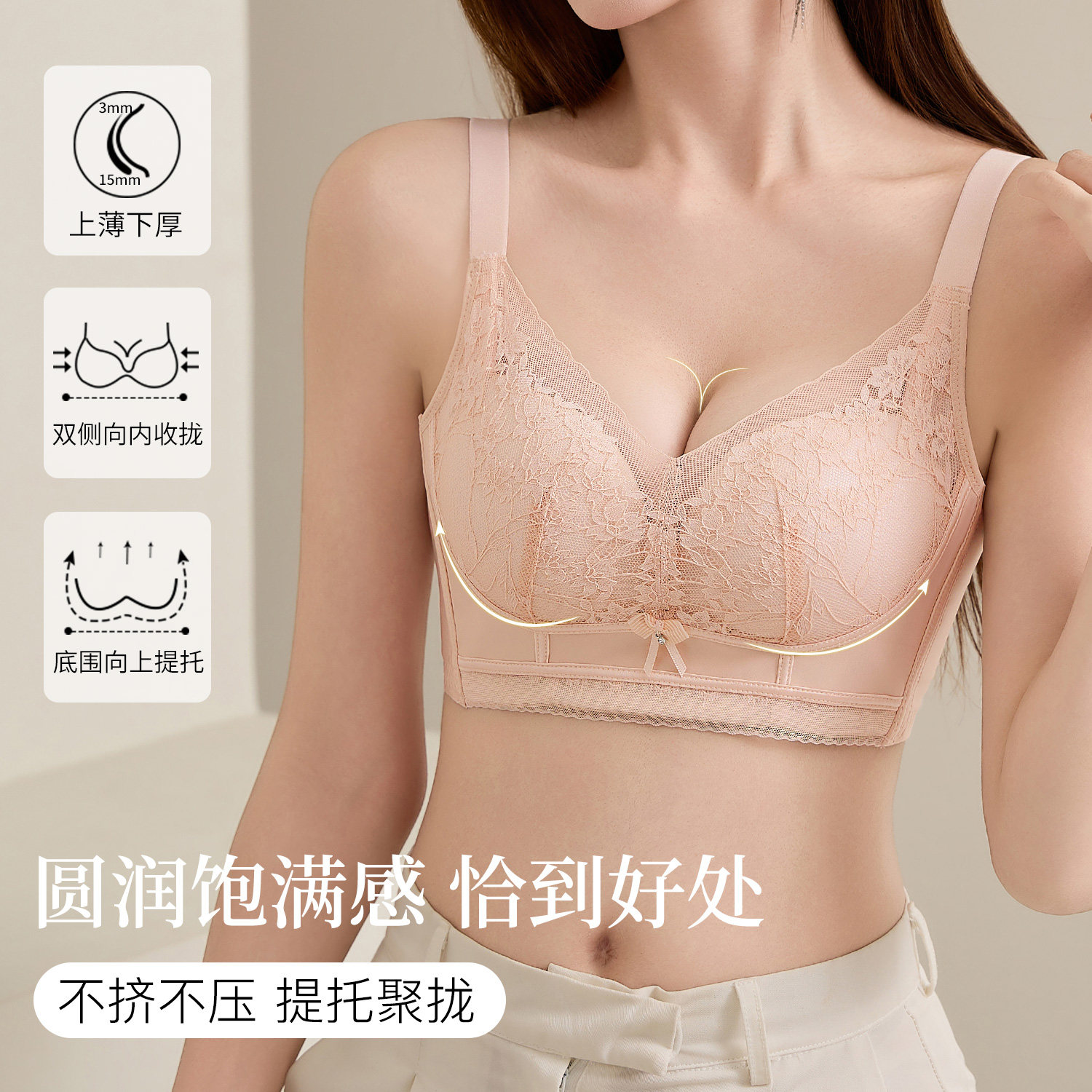 美思内衣女聚拢小胸收副乳防下垂无钢圈调整型塑形文胸罩 樱络