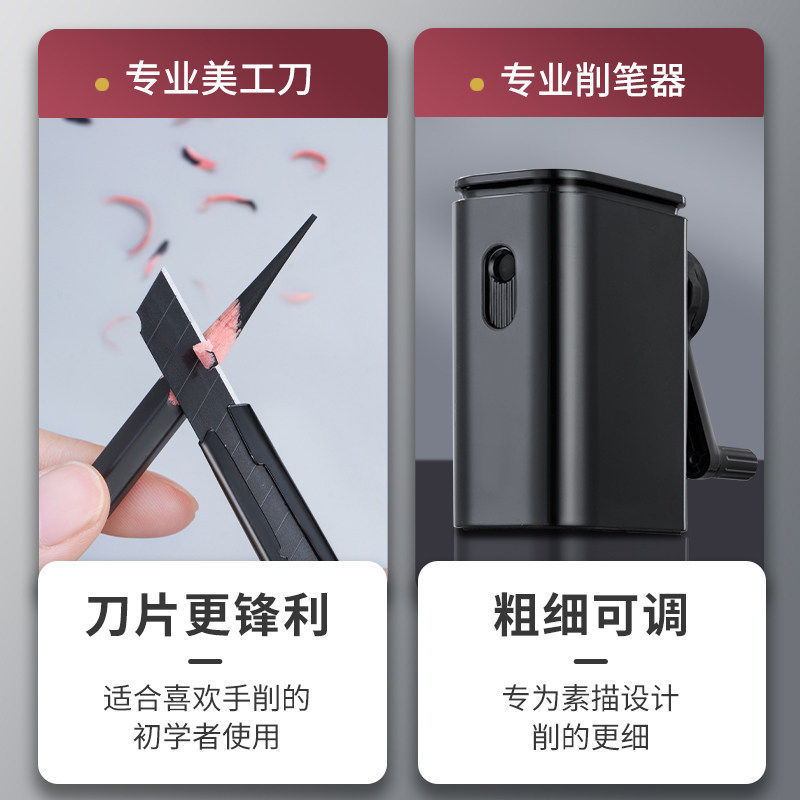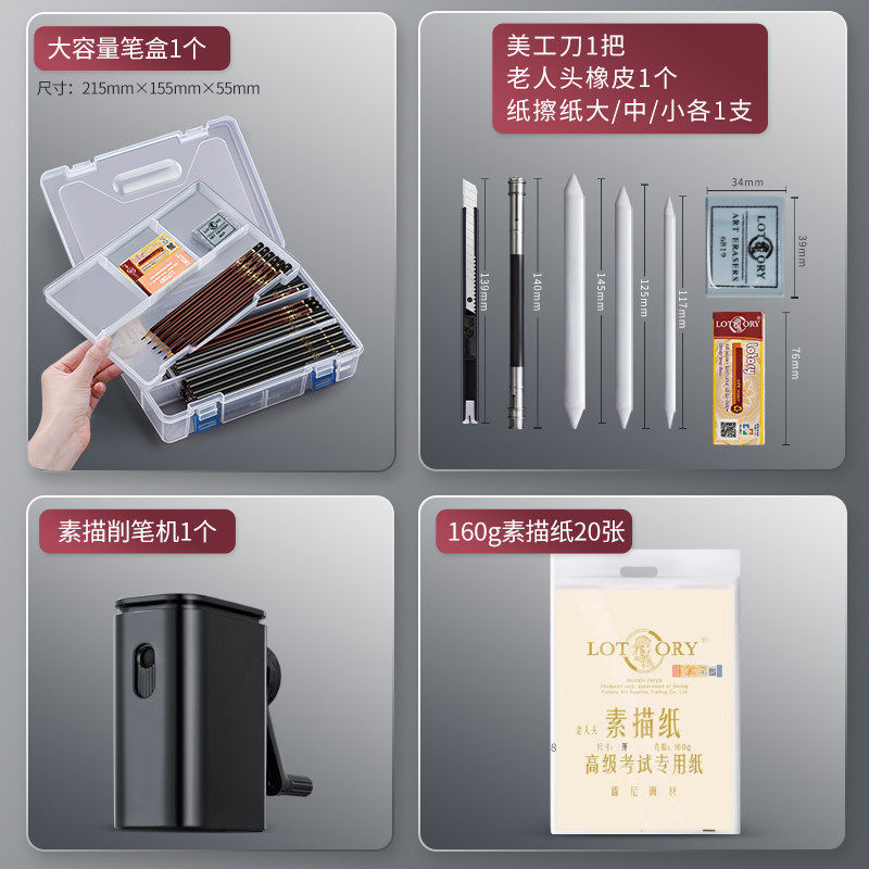 老人头素描工具套装 美术生专用2b绘画工具全套铅笔炭笔素描笔品画画必备笔帘初学者4b2比速写8b入门专业