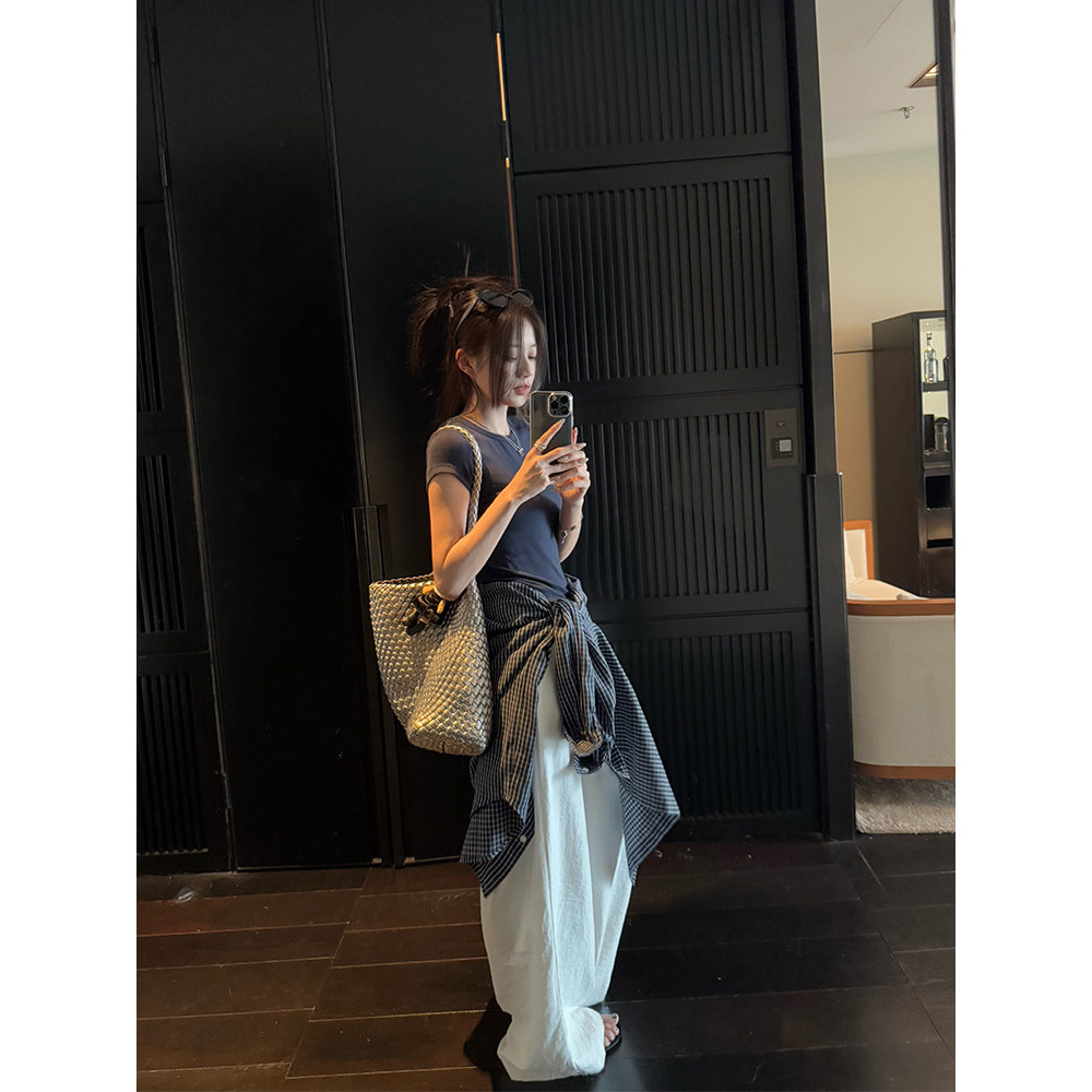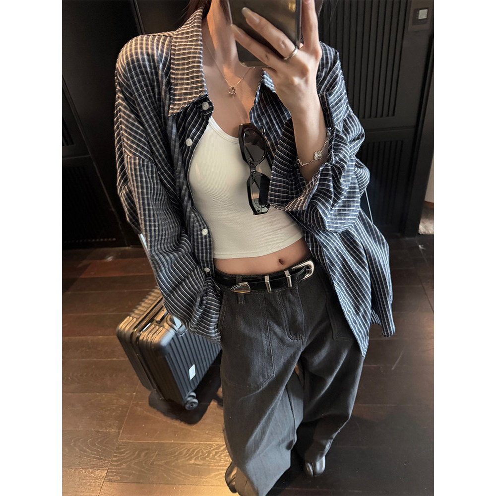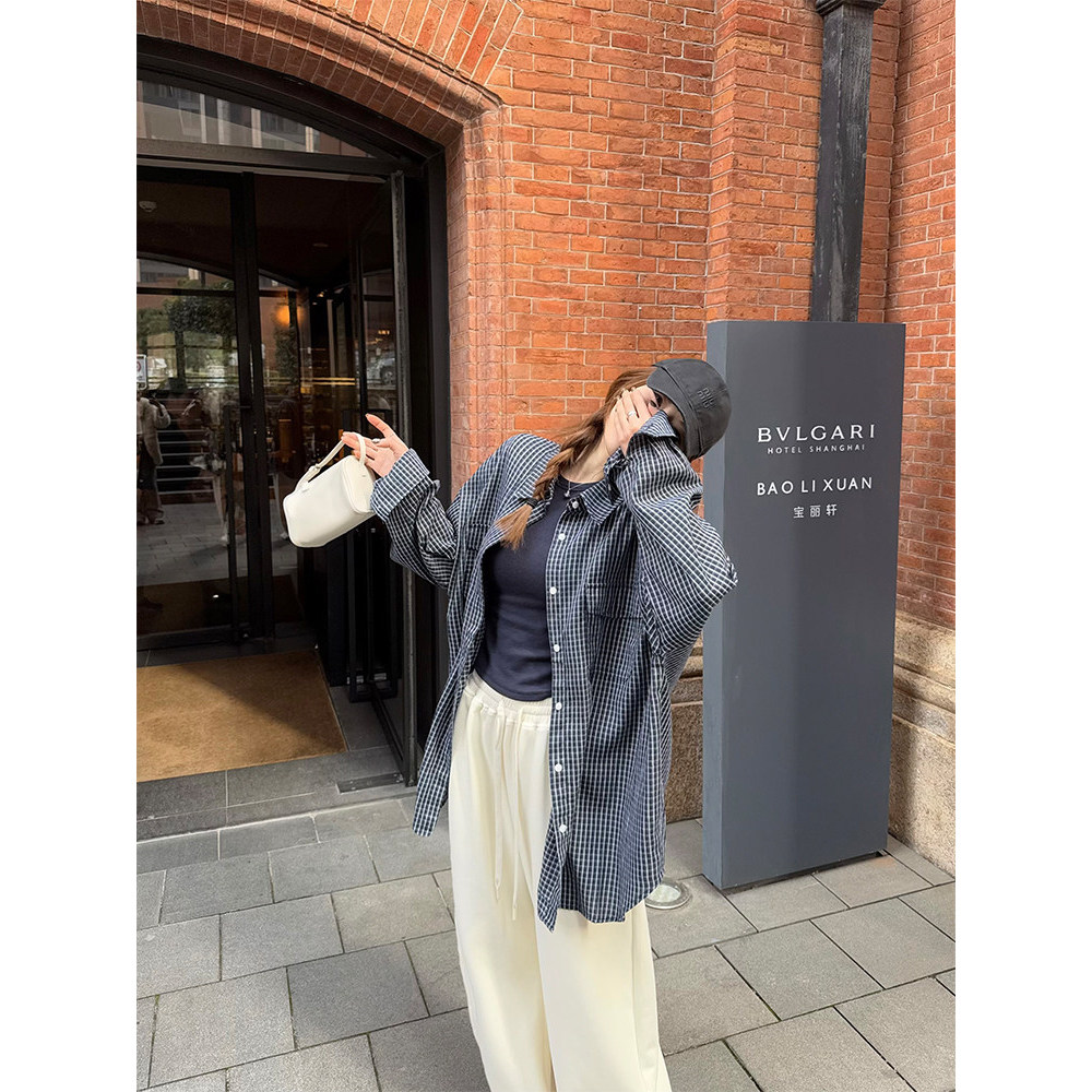 女春夏 百搭格纹衬衫 YOUMI 蓝调时刻复古高支棉宽松显瘦长袖