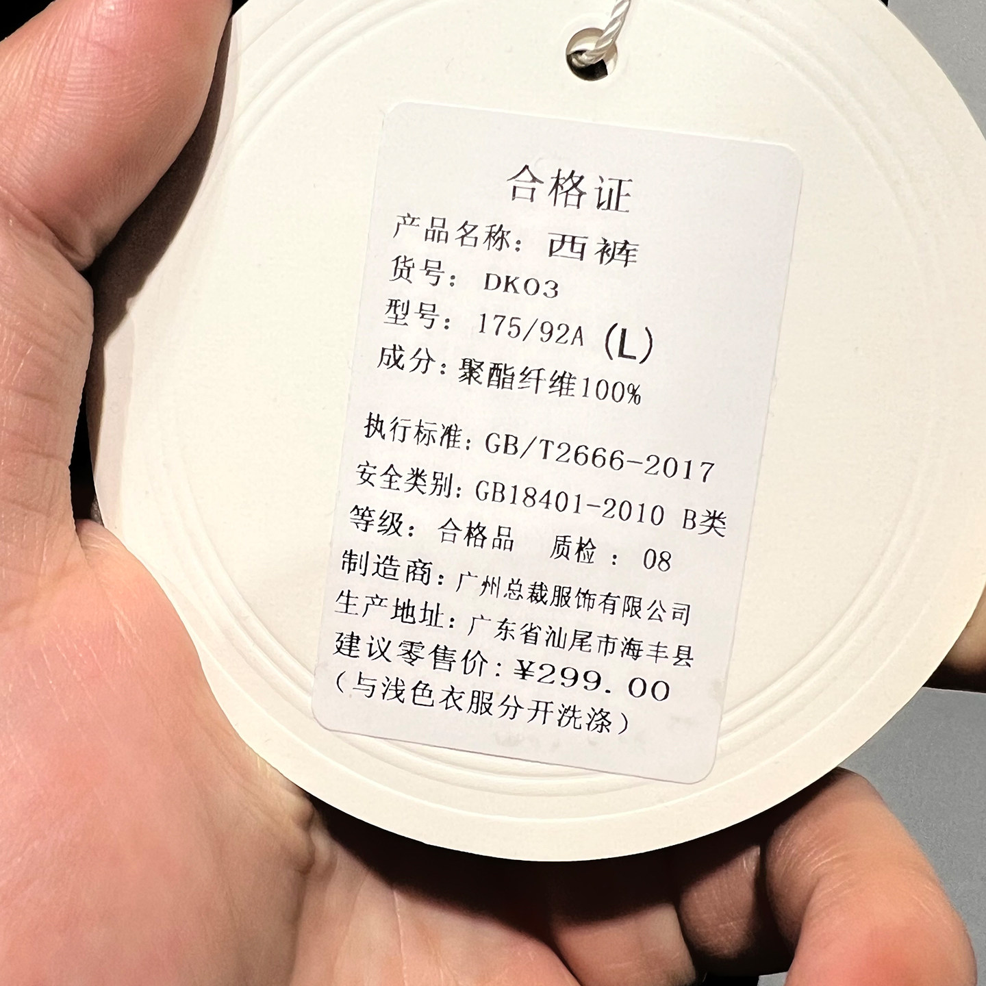 商品标签:西裤修身直筒长裤