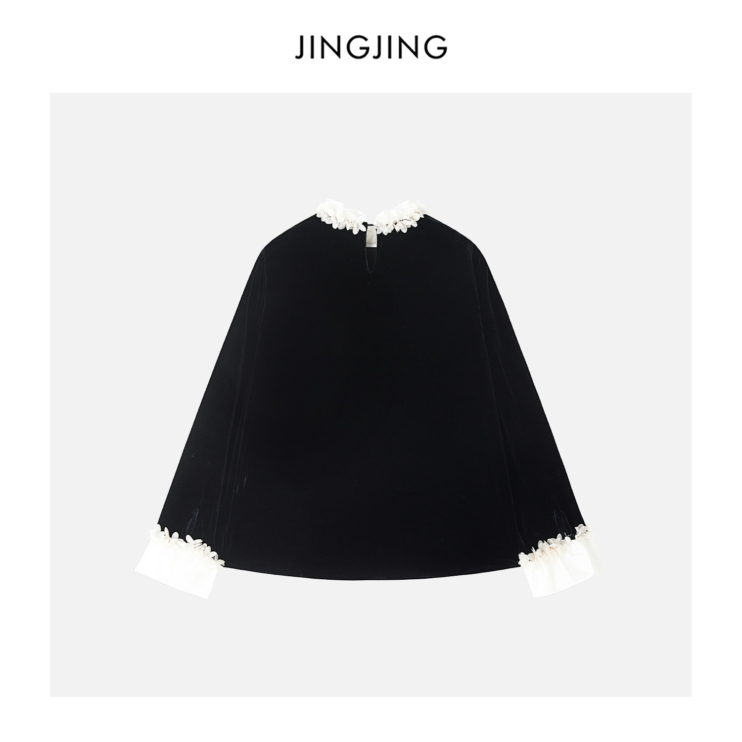 宽松时尚 半高领大码 显瘦保暖减龄上衣女 双面德绒拼接长袖 秋冬新款