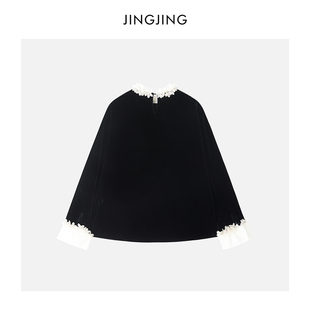 外贸清仓捡漏纯棉休闲气质上衣减龄洋气女士时尚 拼接打底卫衣 秋装