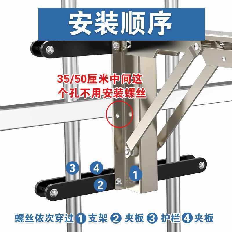 ?不锈钢防盗窗晾衣架高层免打孔可折叠外置挂晒衣架防护栏晾晒神